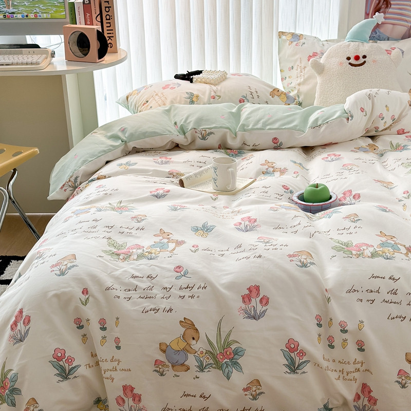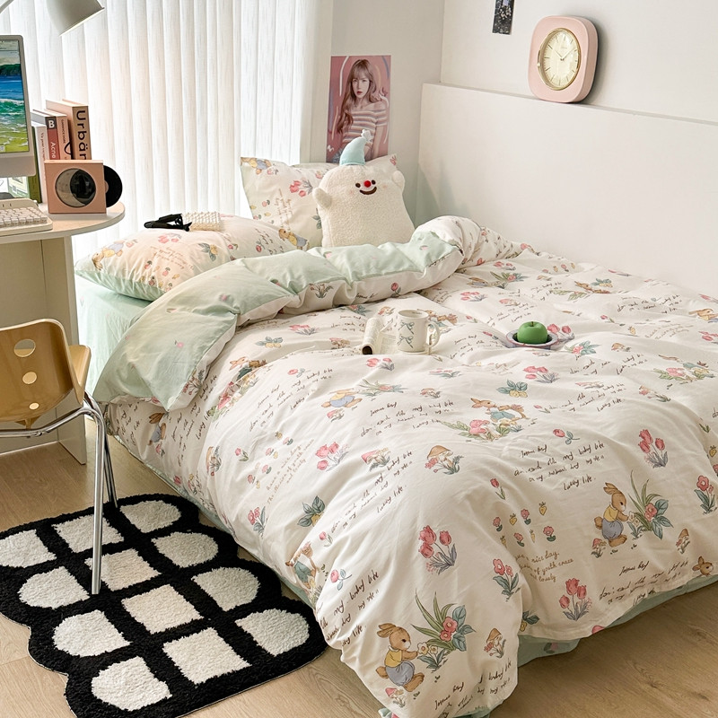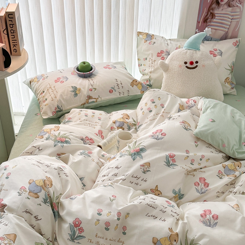 昔可 2023新款全棉四件套-第五批 春日采花小兔