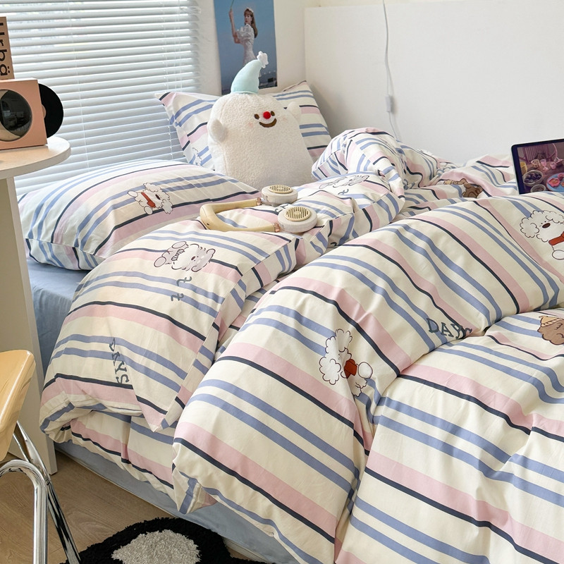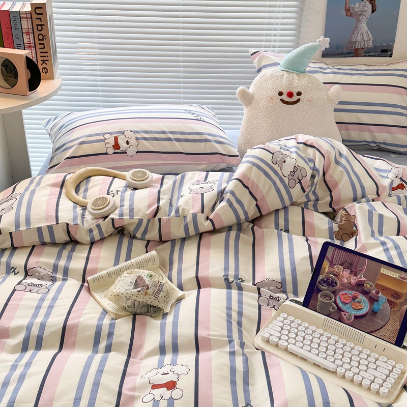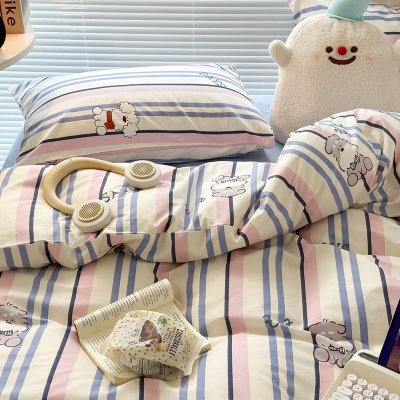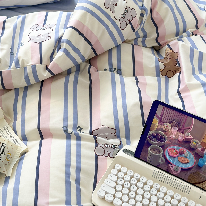 昔可家纺 2023新款全棉小卡通系列四件套 条纹狗狗