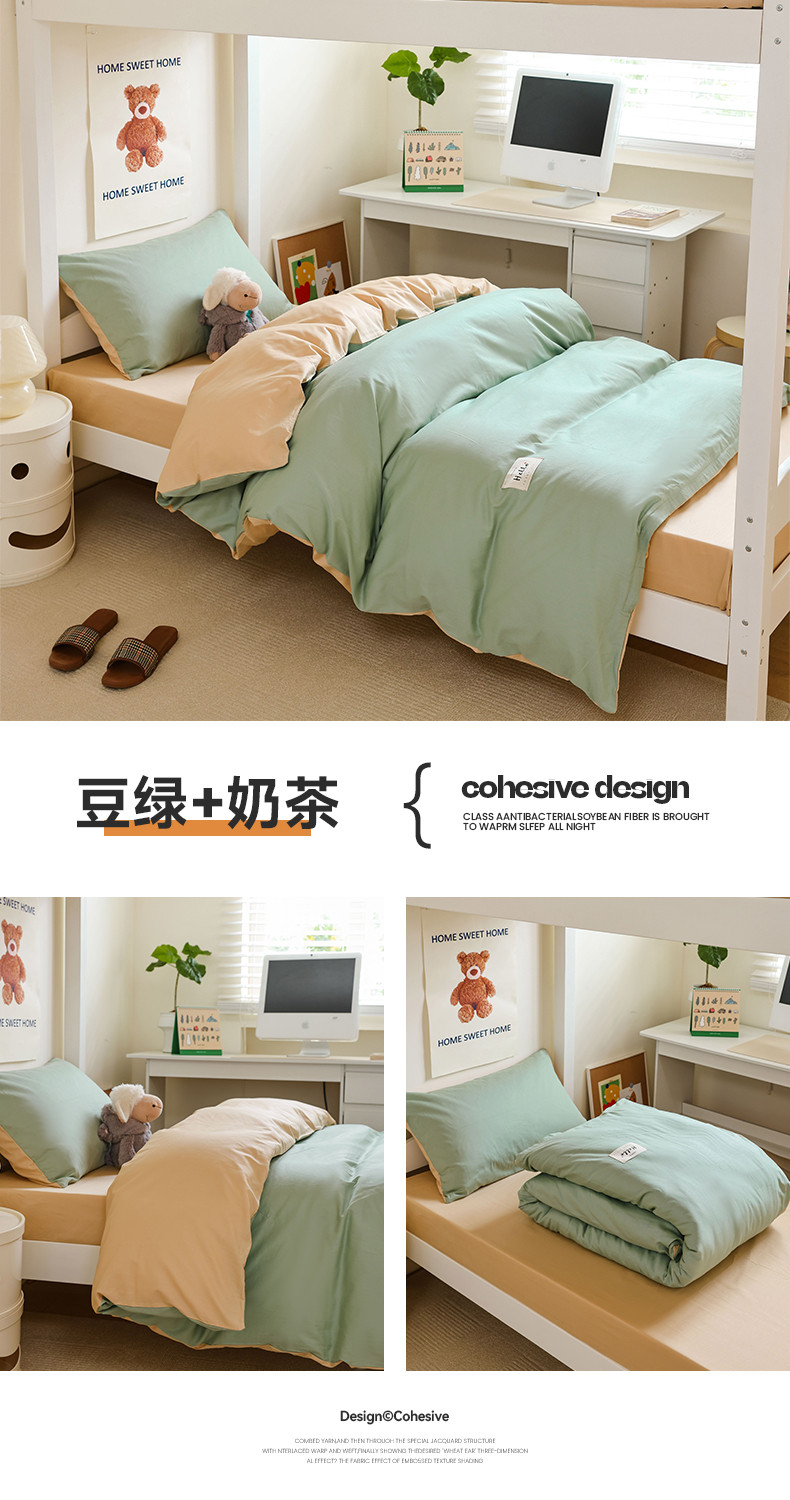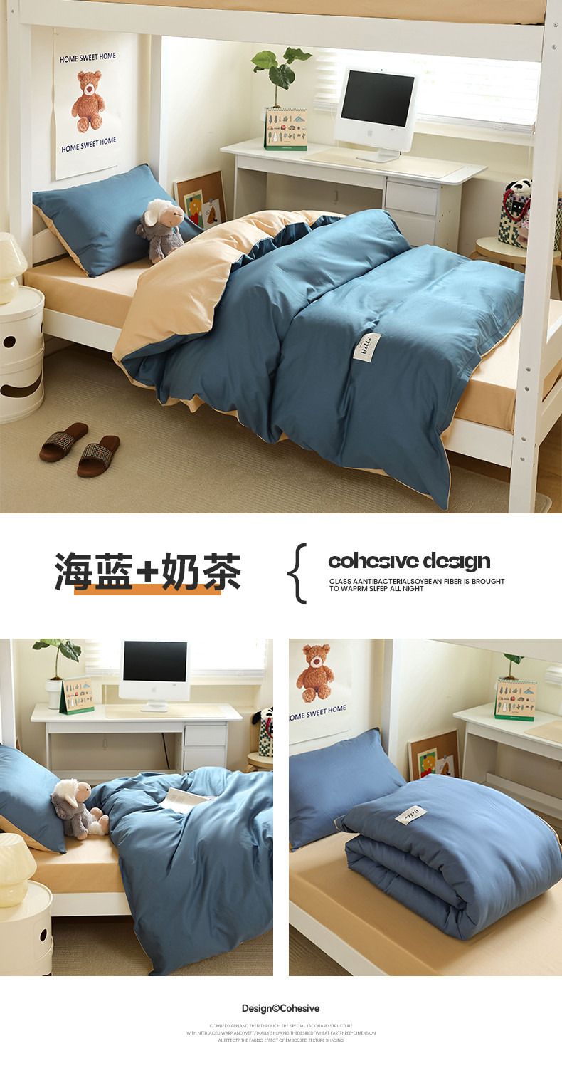 商品名称:(总)寐眠 23款13372纯棉40s纯色双拼学生三件套四件套