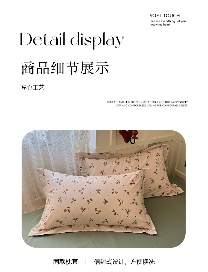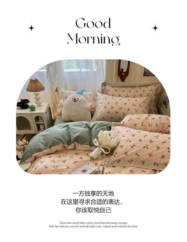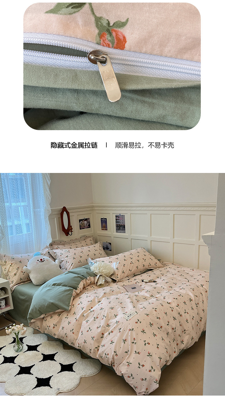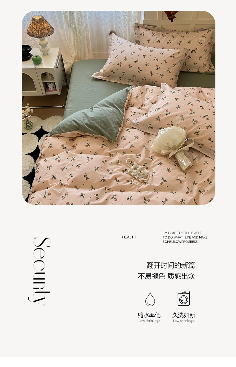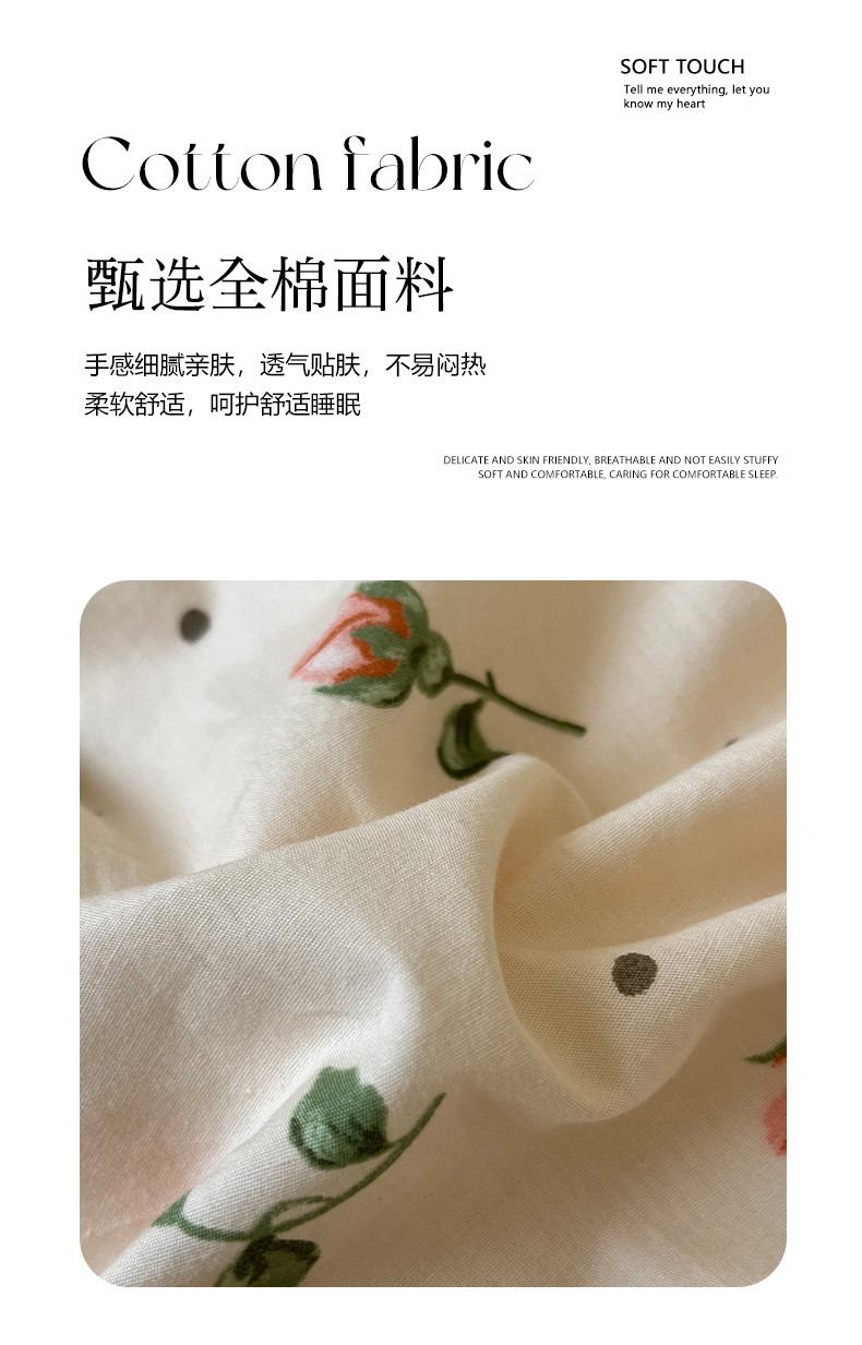 商品名称:米粒家纺 2023新款全棉印花四件套系列 初见-粉