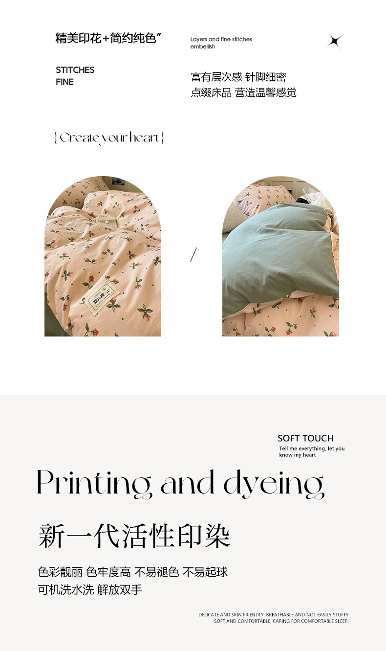 米粒家纺 2023新款全棉印花四件套系列 初见-粉