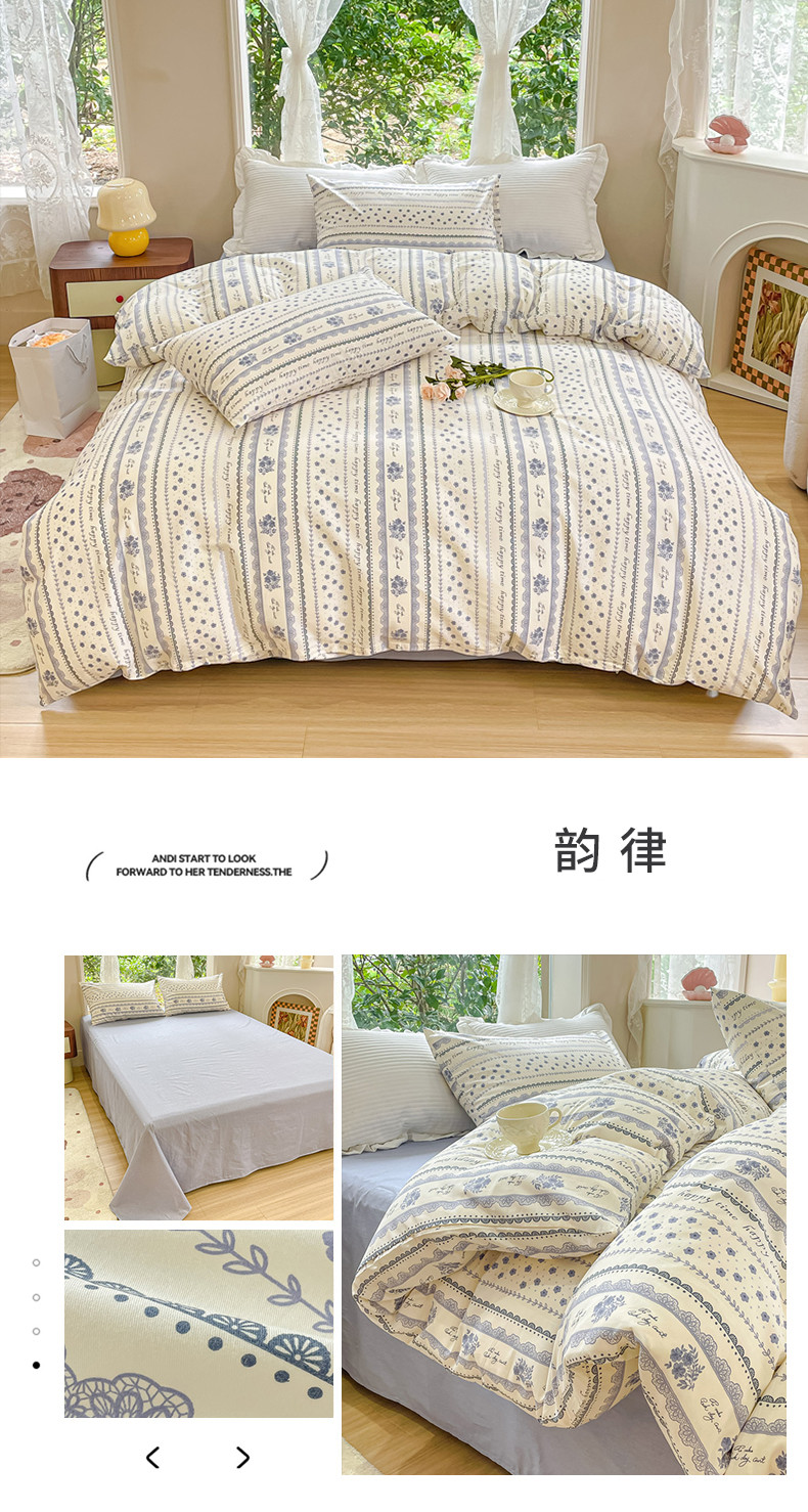 当前位置: 91家纺网 > 商品网购 > 床品套件 > 四件套 > 全棉普通四件套 > 珺柔家纺 2023新款13372全棉印花四件套 韵律