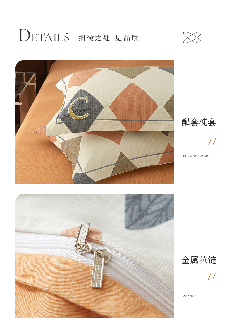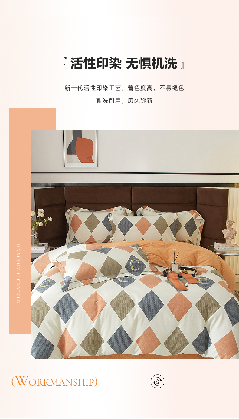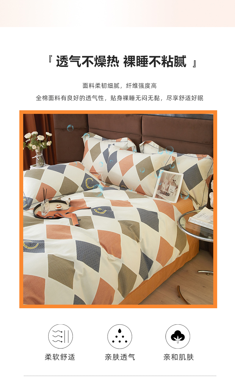 商品名称:启航家居 2025直播热款全棉精梳磨毛印花四件套-小资格调系列 艺格-桔