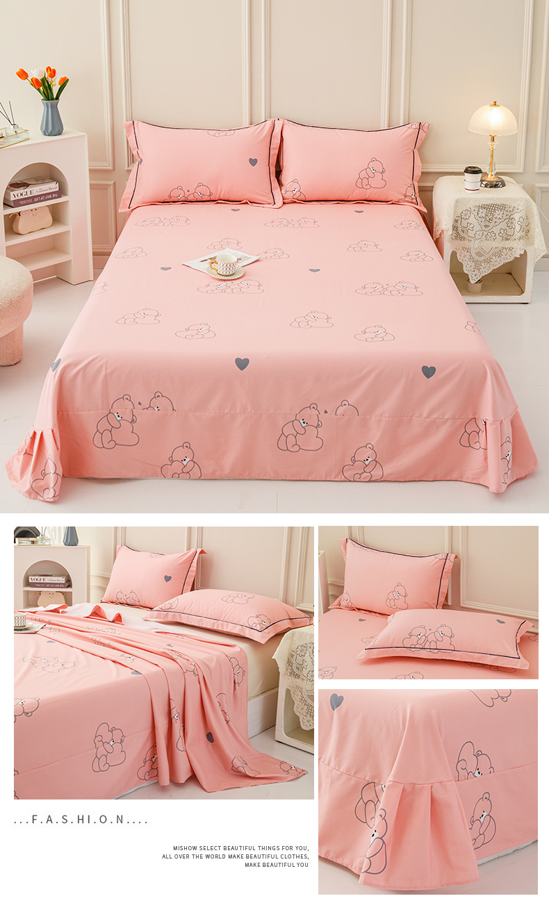 商品名称:新款50双股澳棉印花单床单定做定制尺寸 抱抱熊-粉