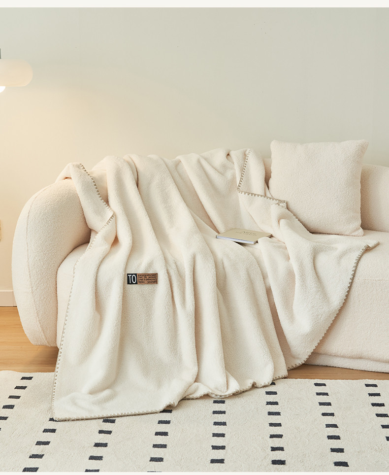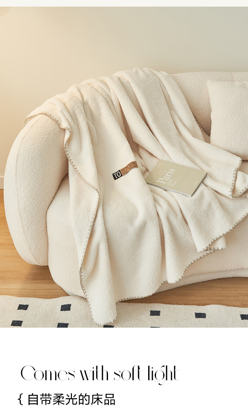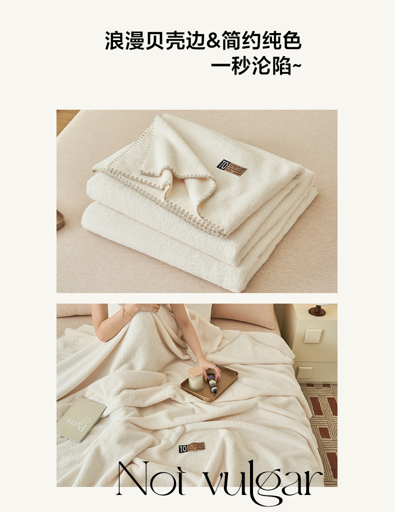 商品名称:晨曦家纺 2023新款高克重440克云朵绒双层毛毯高级贝壳边加厚毯子 云朵绒-奶白