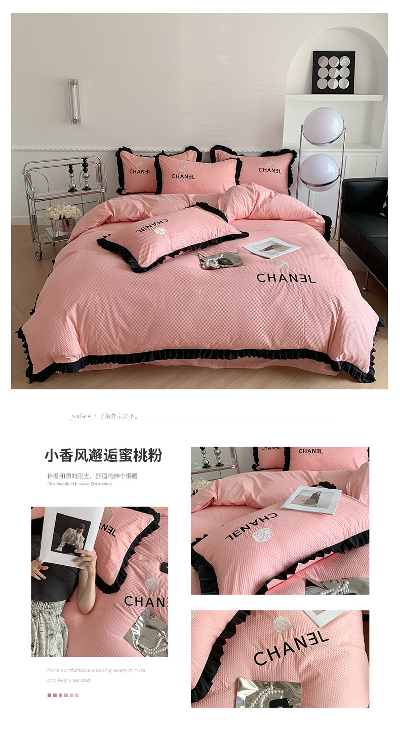商品名称:吾欢心 2025新款华夫格暖小棉小香风邂逅系列四件套 小香风邂逅蜜桃粉