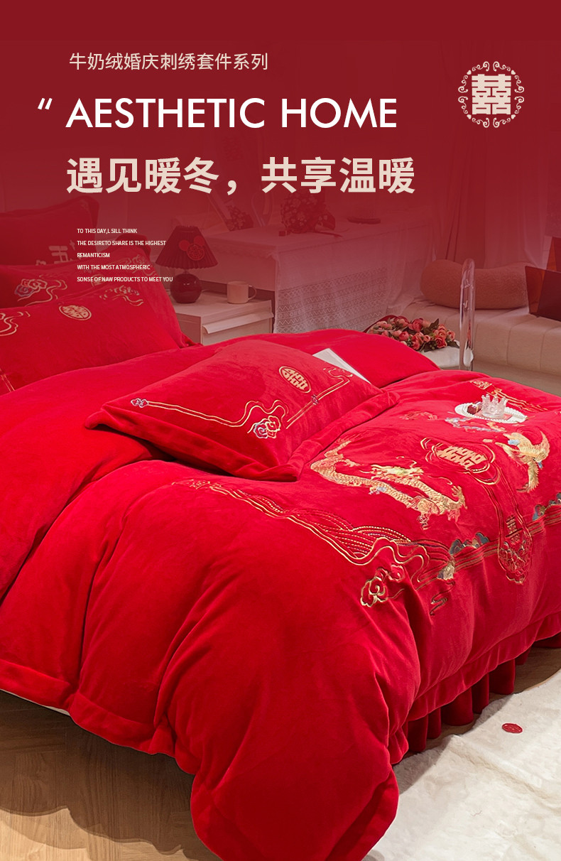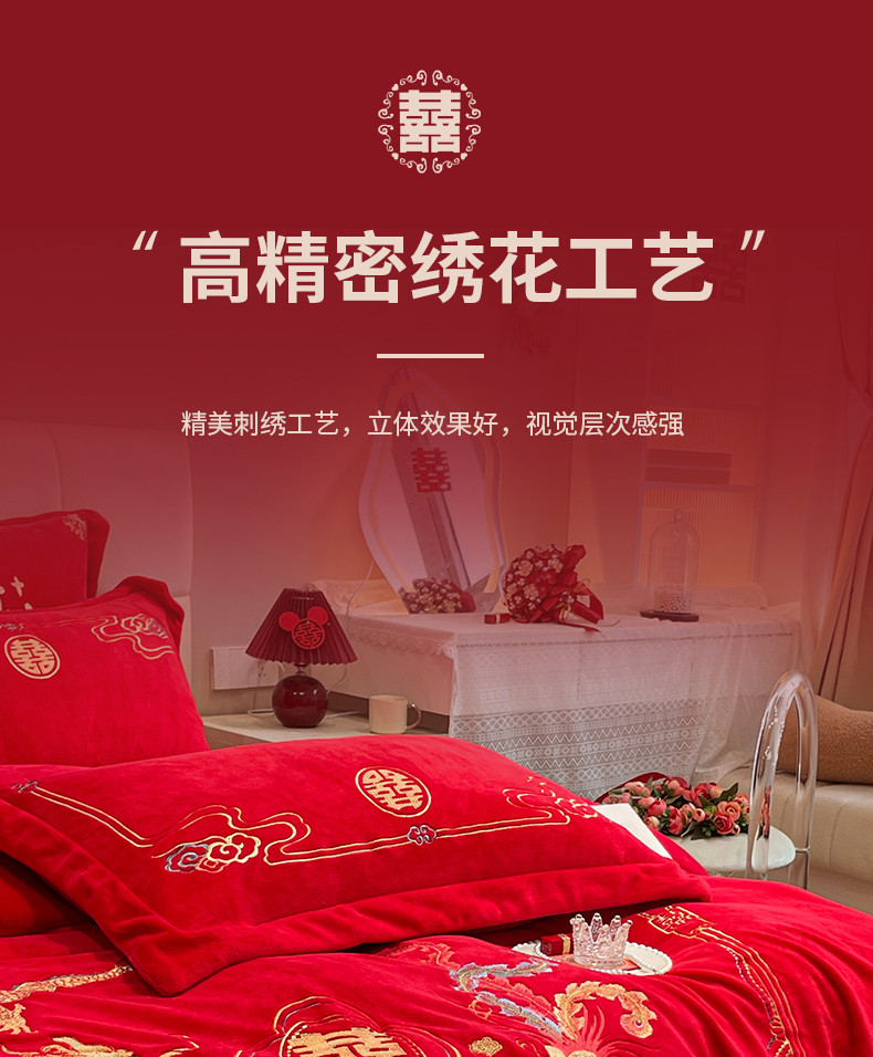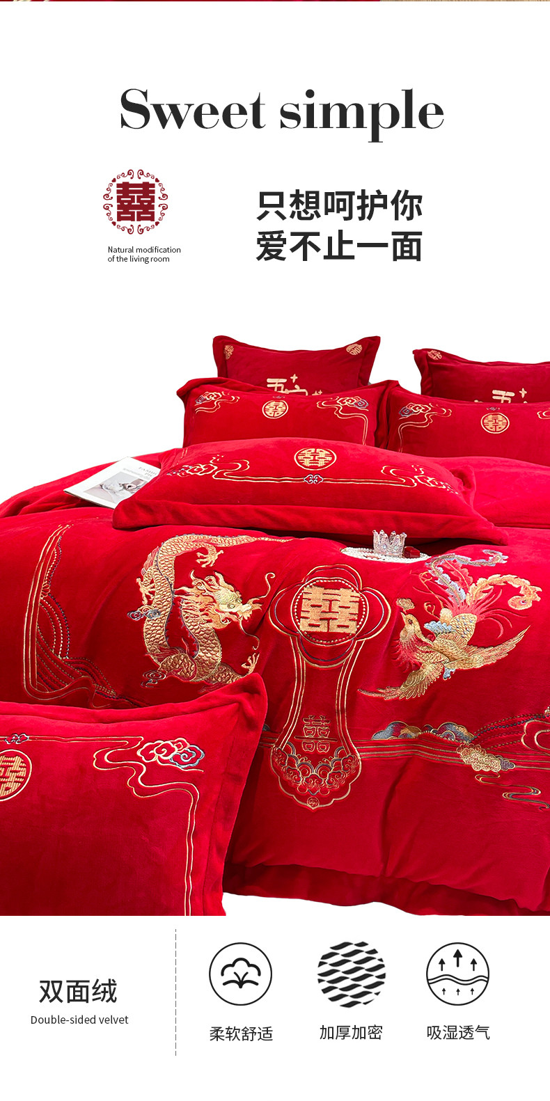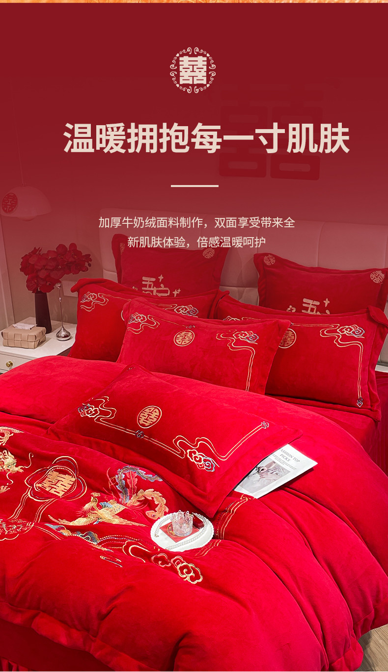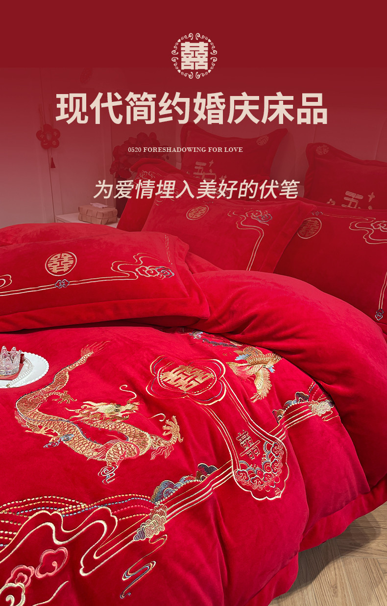 当前位置: 91家纺网 > 商品网购 > 床品套件 > 多件套 > 多件套 > 玉雅 2025高克重牛奶绒刺绣婚庆四件套大红套件 牛奶绒婚庆-龙凤双喜