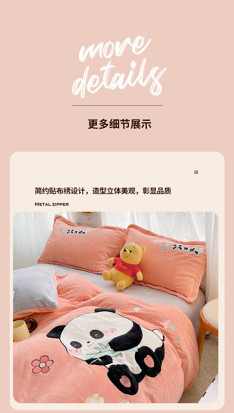 当前位置: 91家纺网 > 商品网购 > 床品套件 > 四件套 > 牛奶绒四件套 > 推推 2025新款毛巾绣贴布绣牛奶绒四件套 熊猫-玉色+银灰