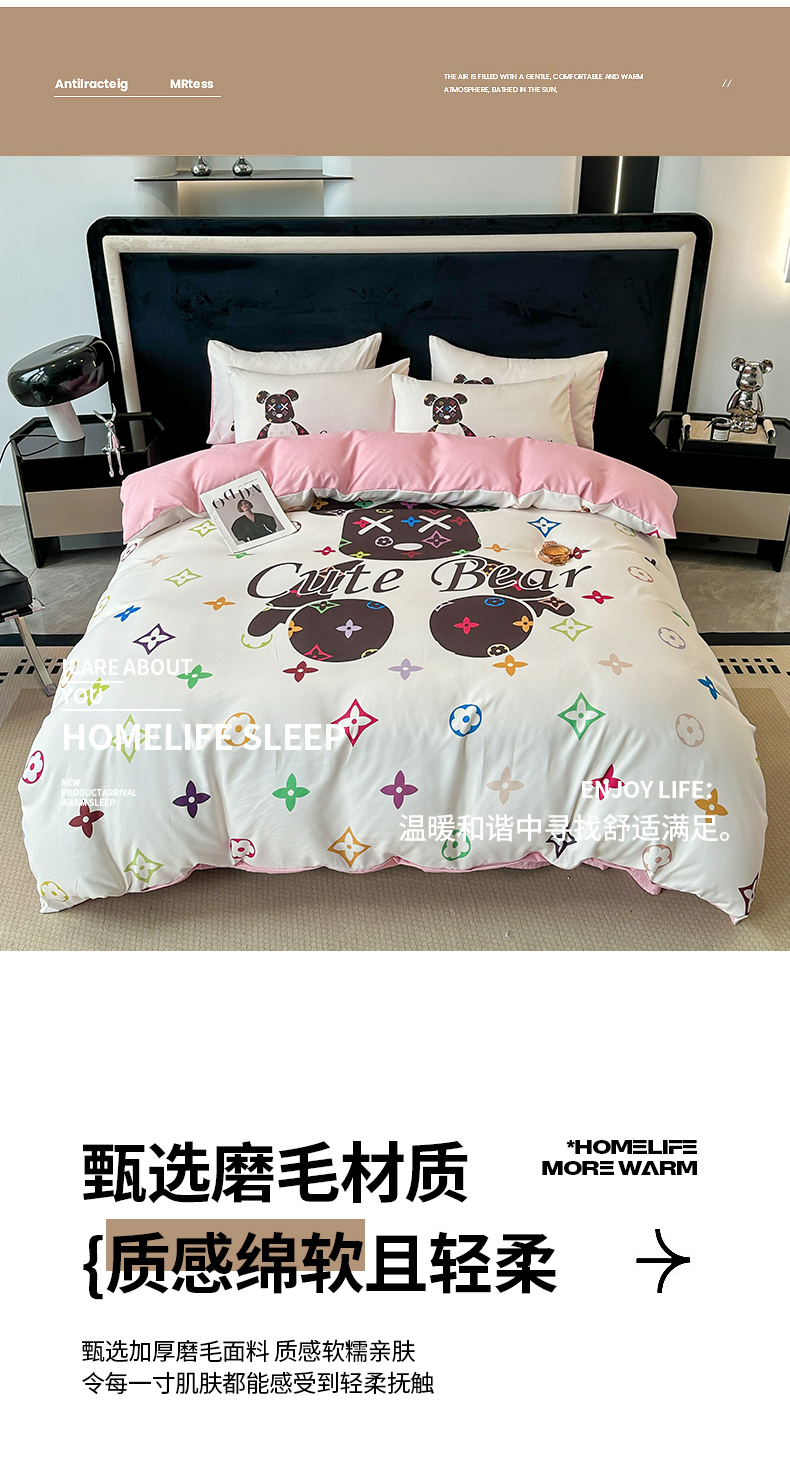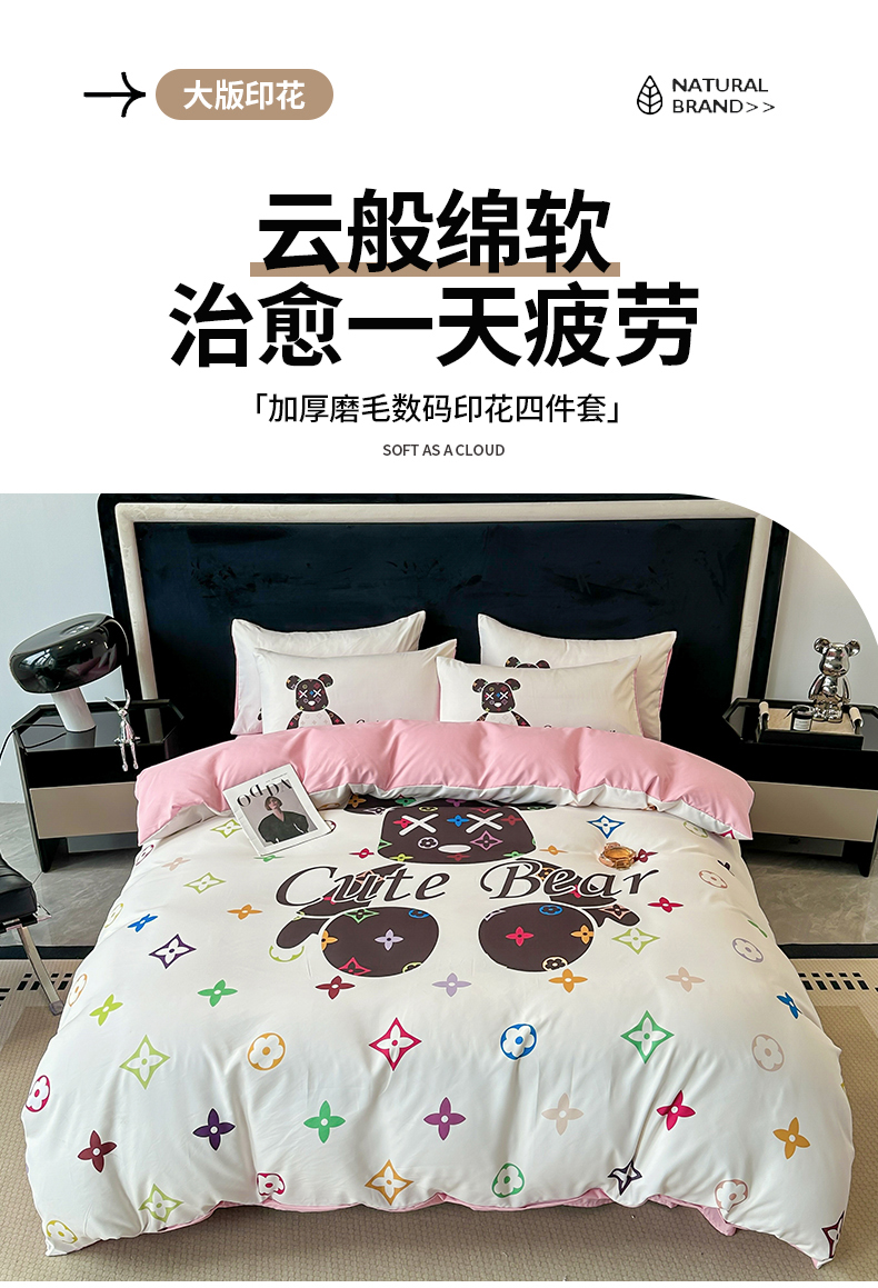 当前位置: 91家纺网 > 商品网购 > 床品套件 > 四件套 > 普通磨毛四件套 > 色鬼布艺 2023新款加厚双面磨毛数码大版印花四件套 多彩熊