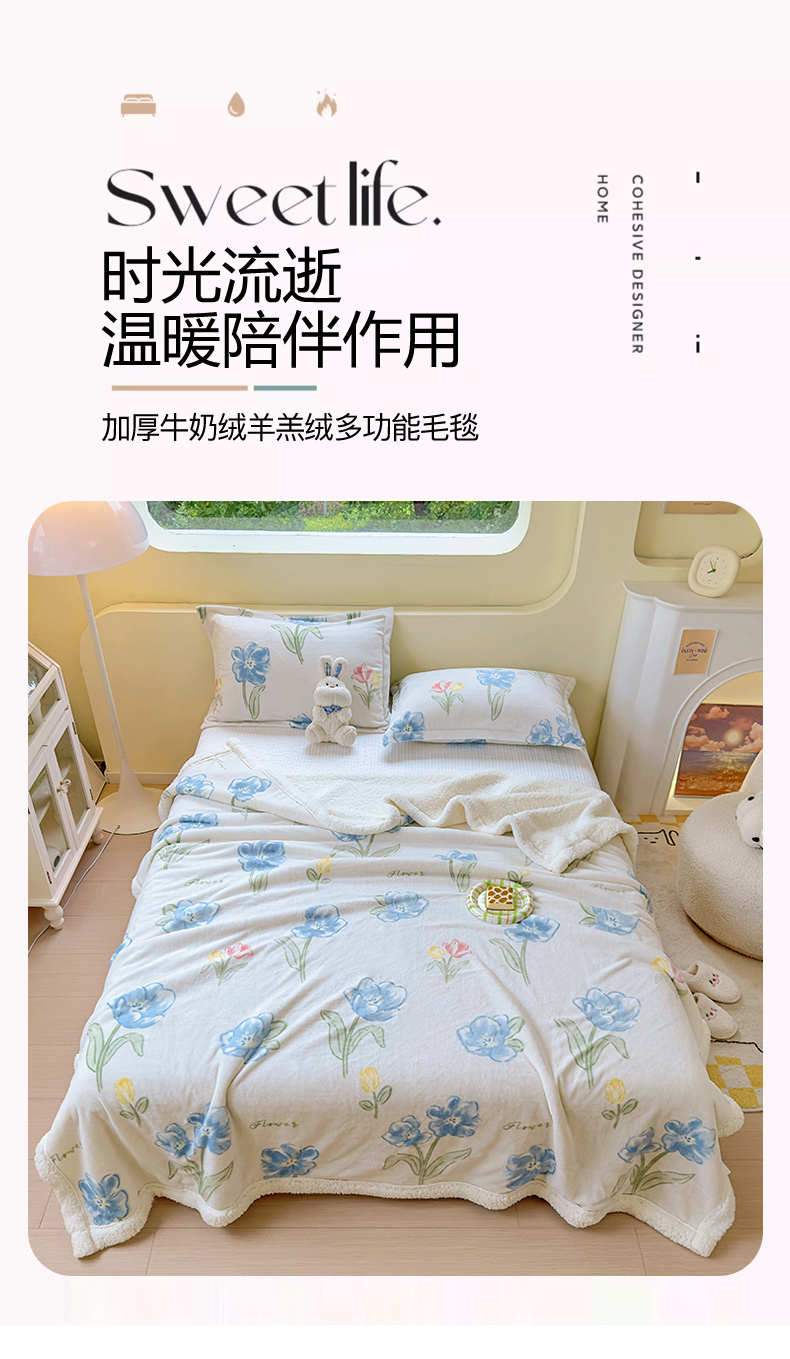 商品名称:沐慕 2023新款毛毯 蓝色花海