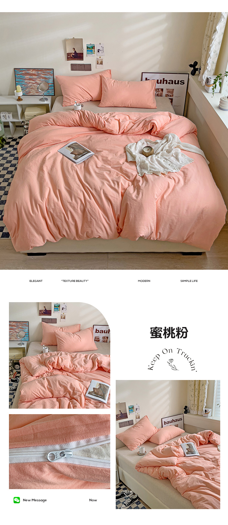 商品名称:六巷胡同 2023新款32支全棉纯色水洗棉单被套 蜜桃粉