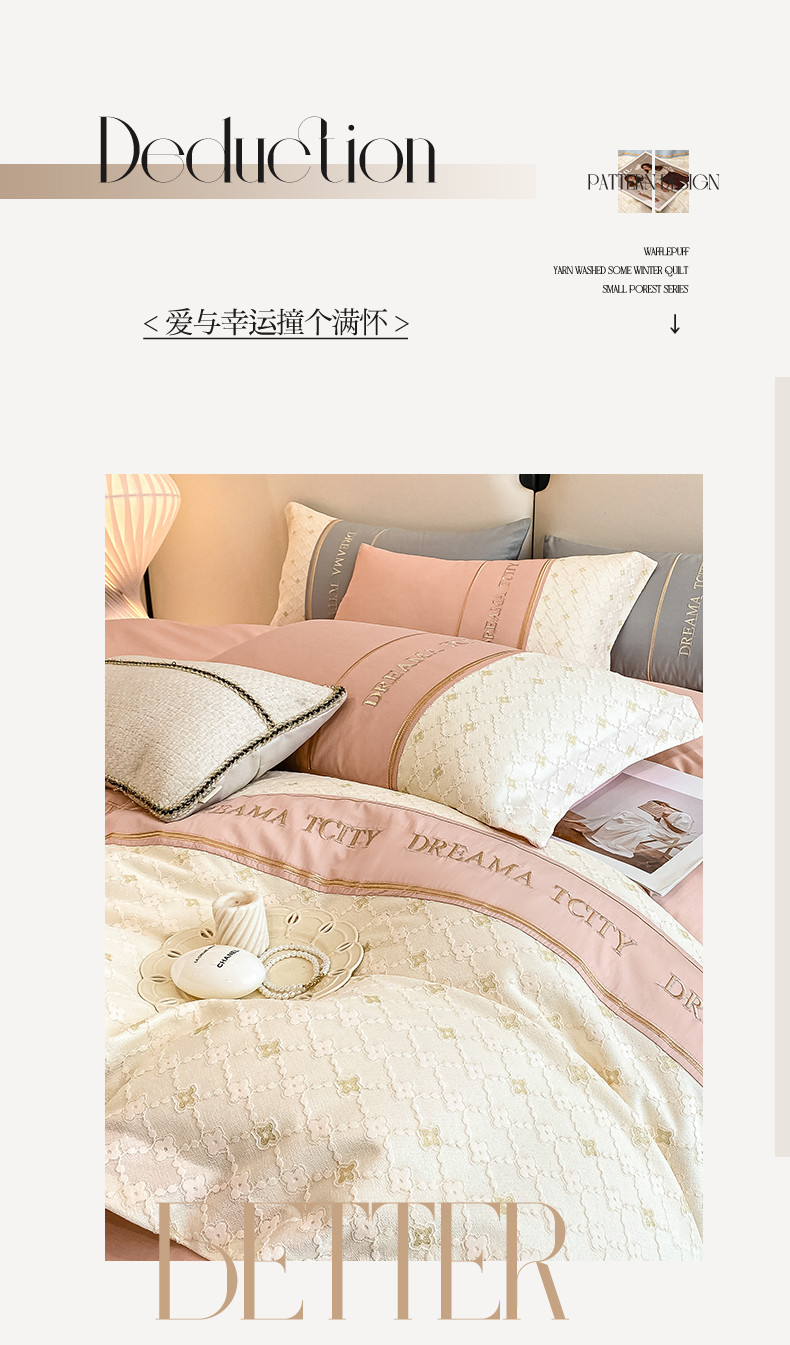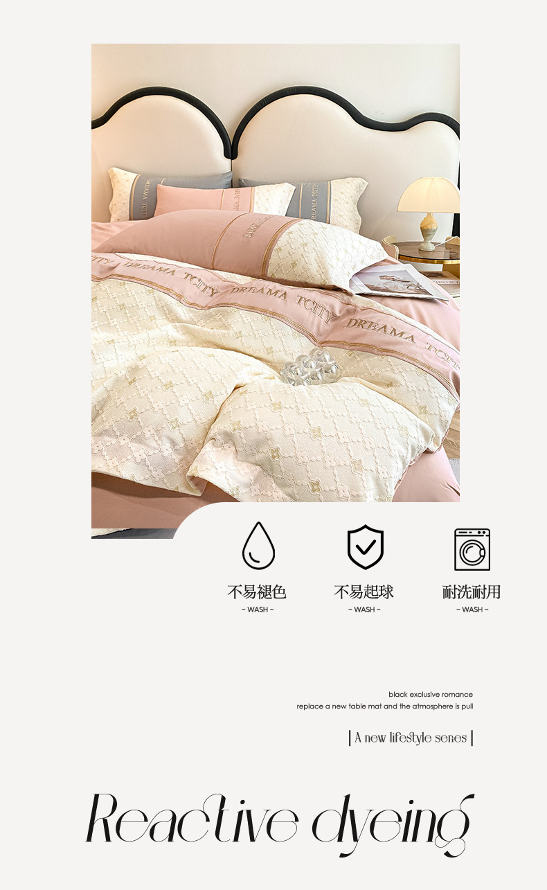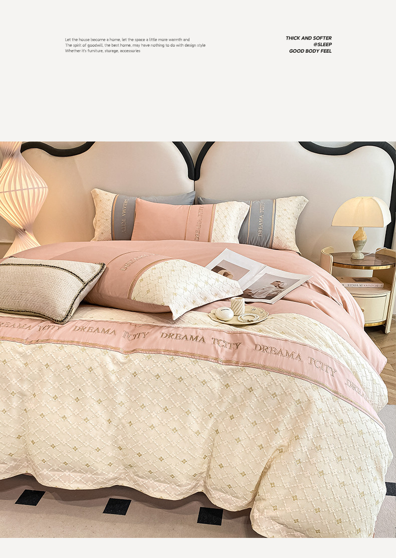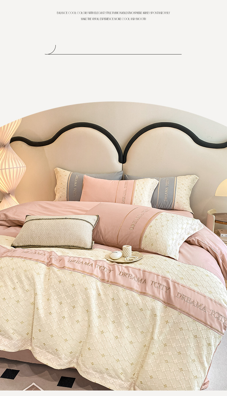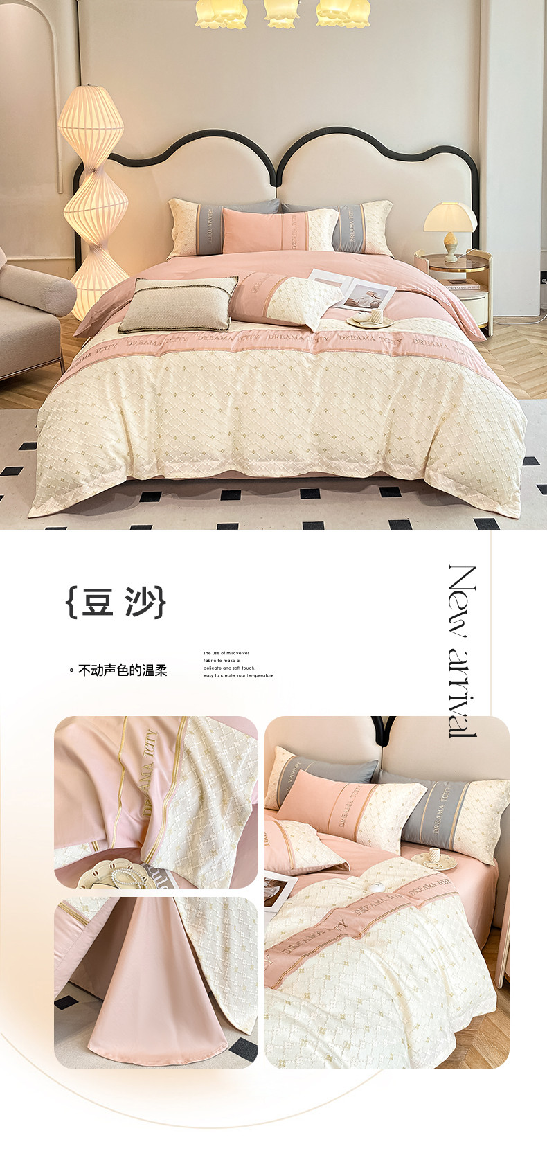 (总)金麦家纺 2025新款冰丝绣花四件套-心愿系列,心愿粉色,心愿燕麦奶,心愿天空蓝,心愿淡雅绿,心愿浅灰