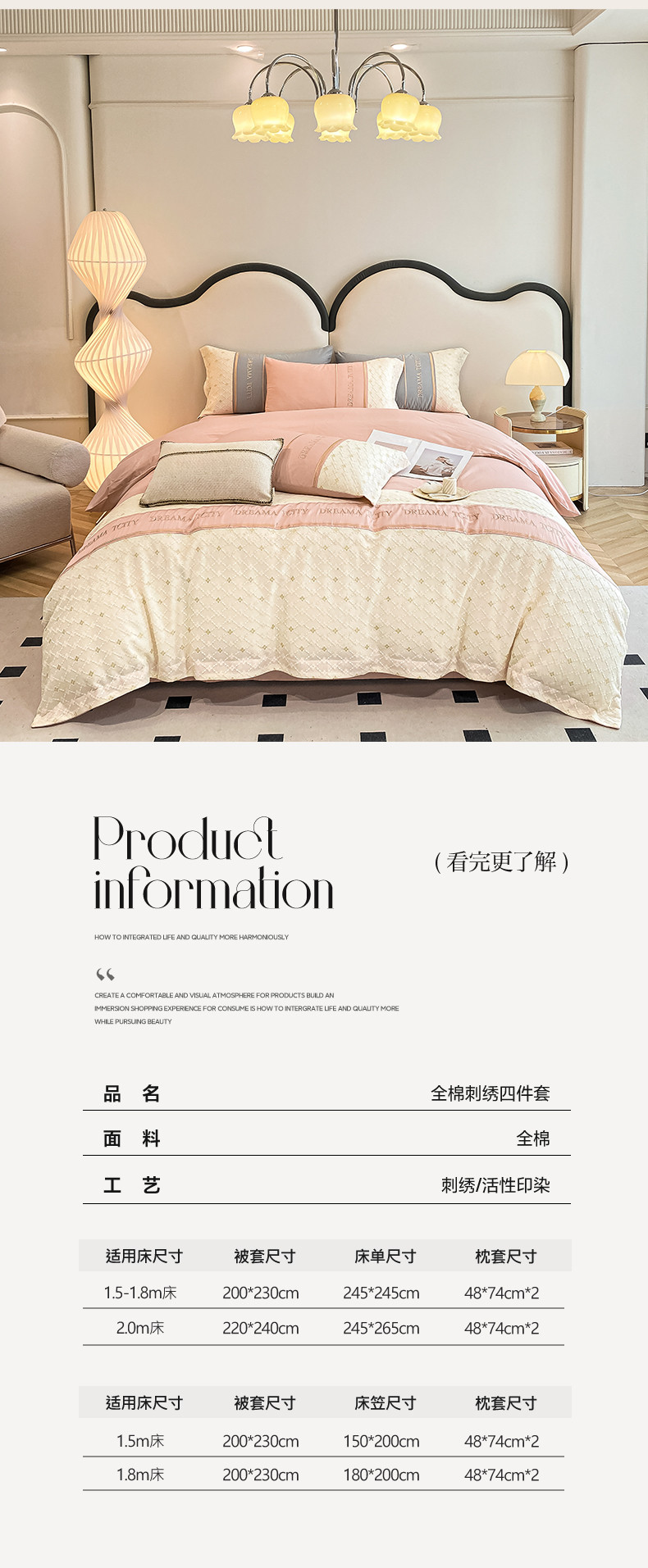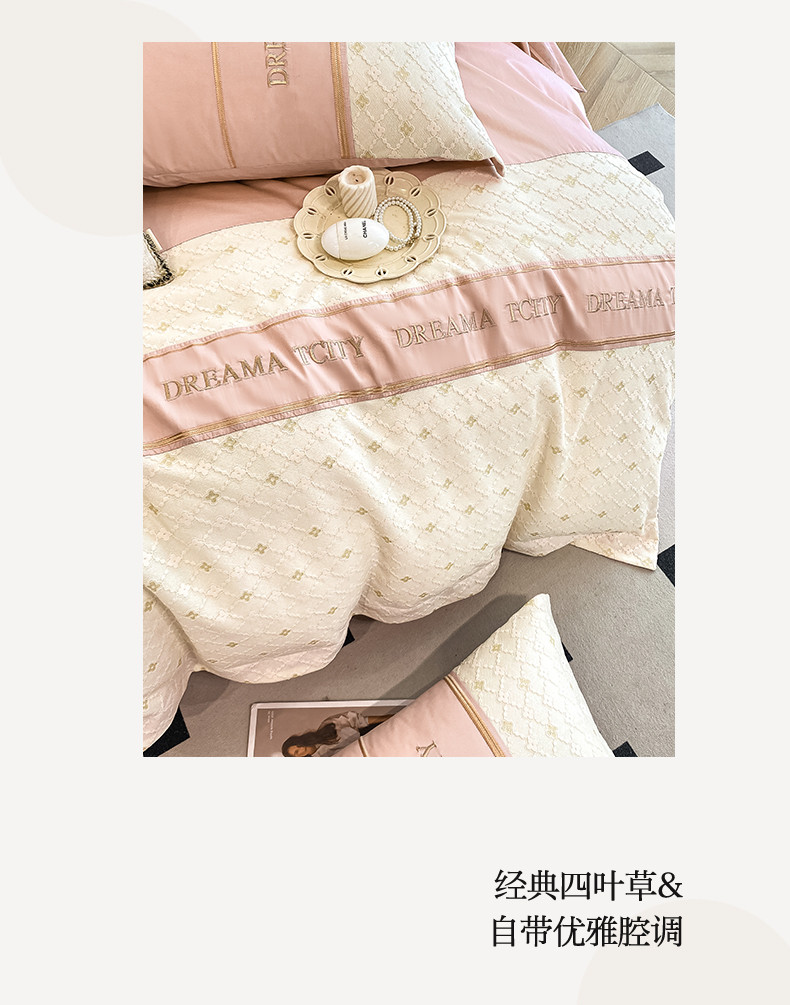 商品名称:(总)金麦 2023新款全棉绣花时髦刺绣四件套-四叶草系列