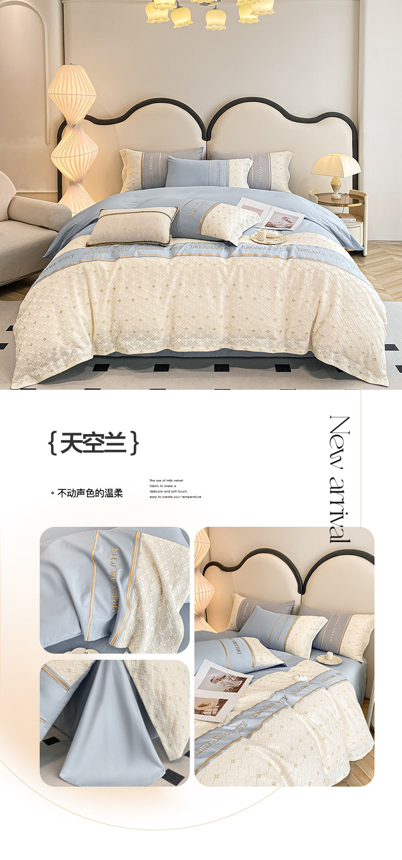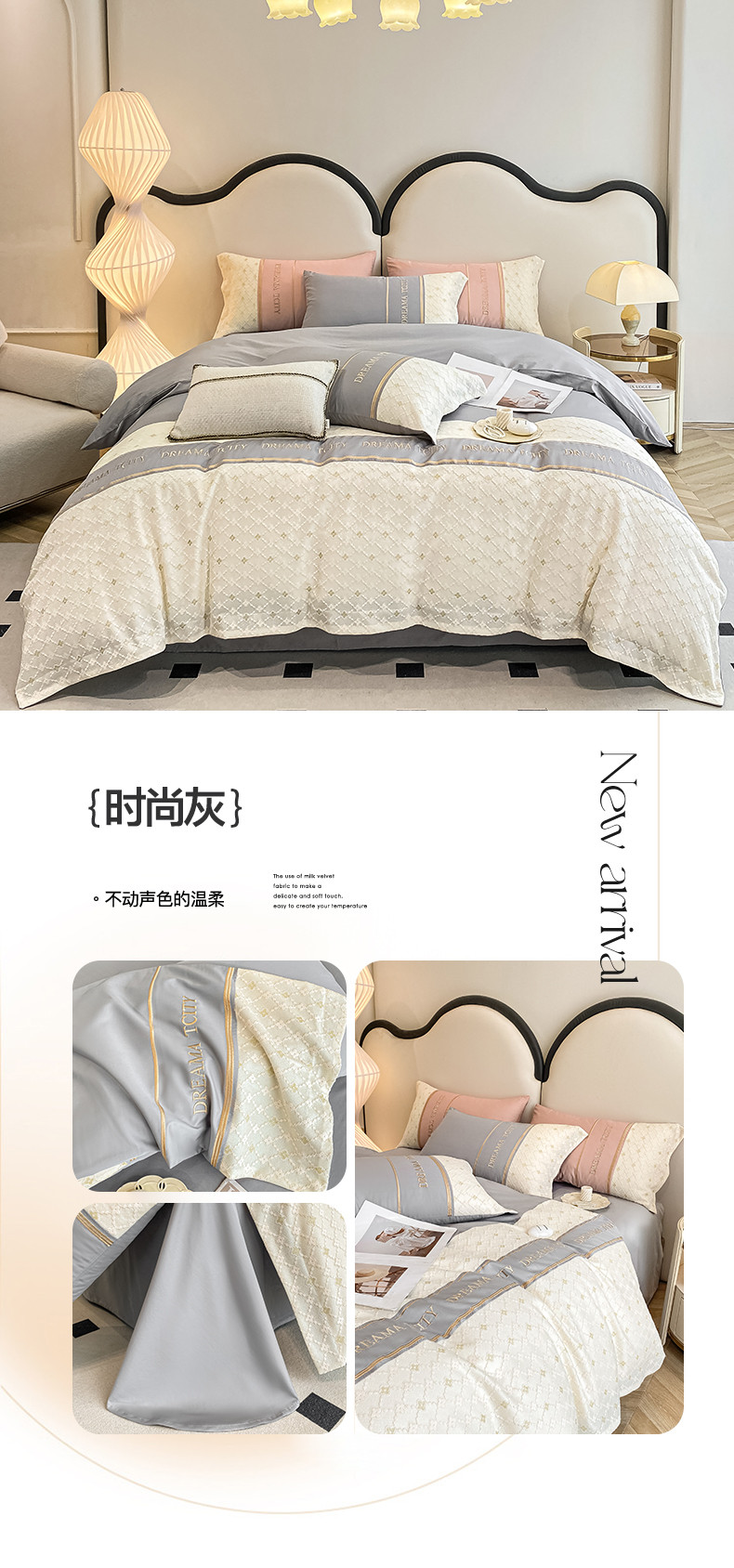 (总)金麦家纺 2025新款牛奶绒撞色拼边四件套贝拉系列,贝拉-海洋蓝,贝拉-宾利蓝,贝拉-粉色,贝拉-灰色,贝拉-香槟色