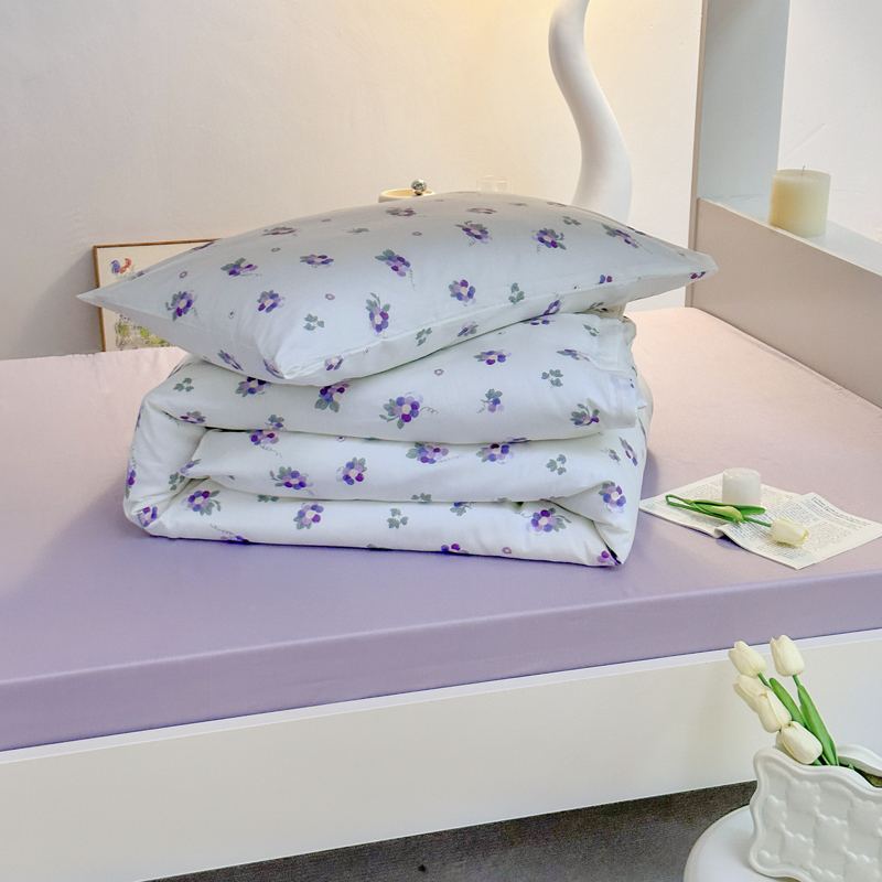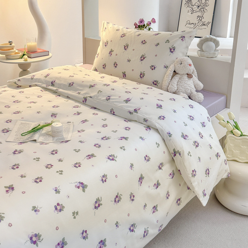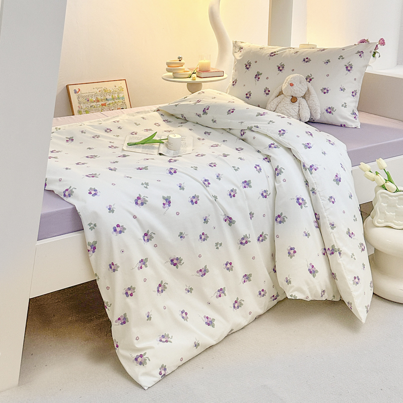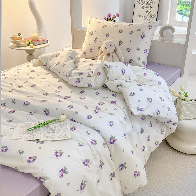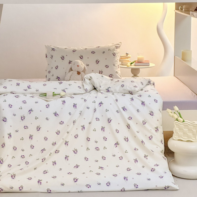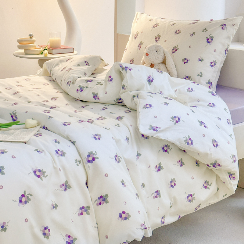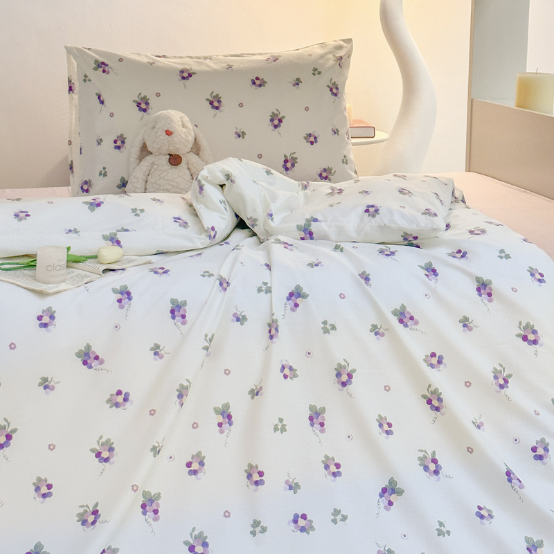 (总)昔可家纺 2023新款全棉小花系列四件套,柏林少女,小小的樱桃,紫色葡萄