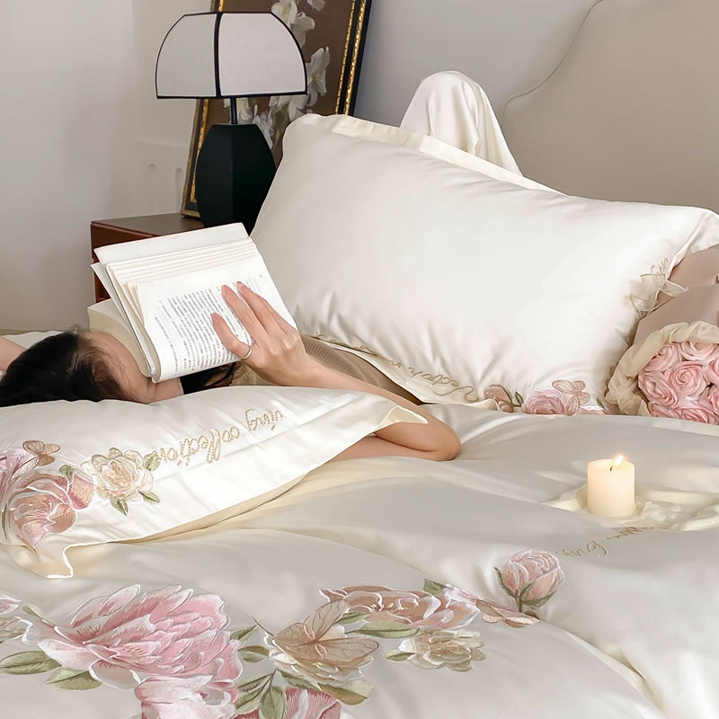 (总)馨蕊家居 2025新款80SLF奥地利兰精天丝四件套-芳华,天丝芳华-蔷薇粉,天丝芳华-婉若紫