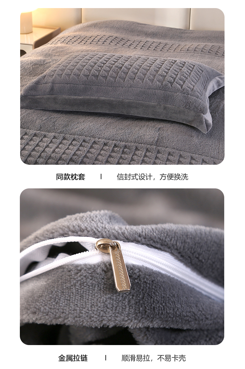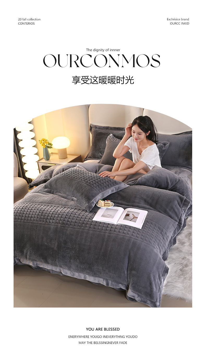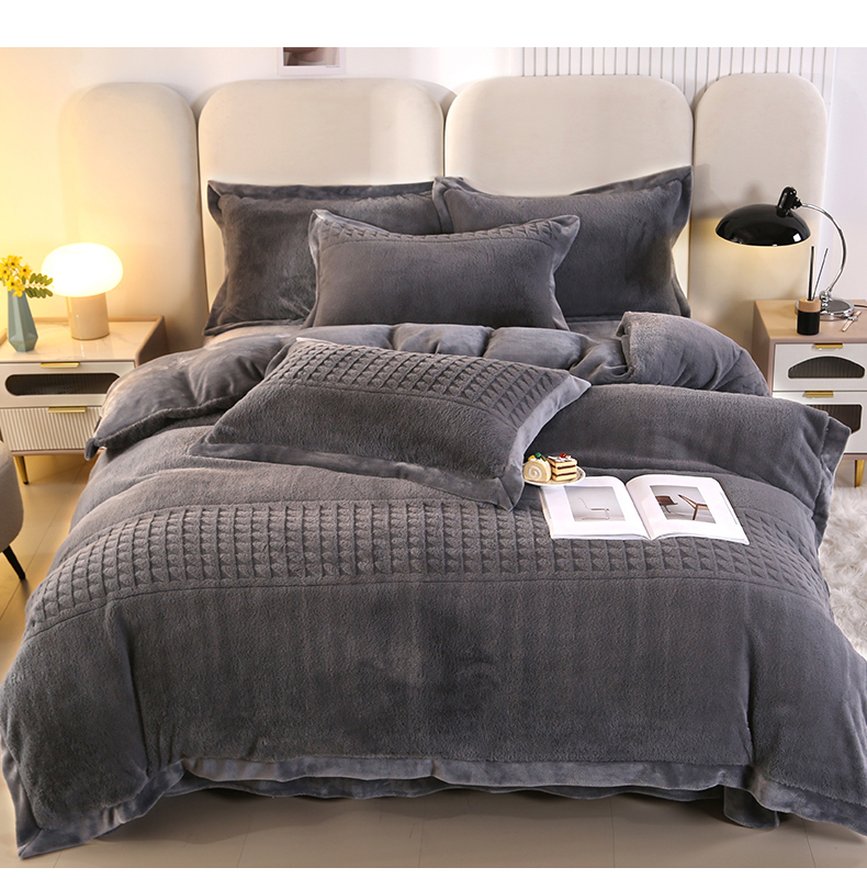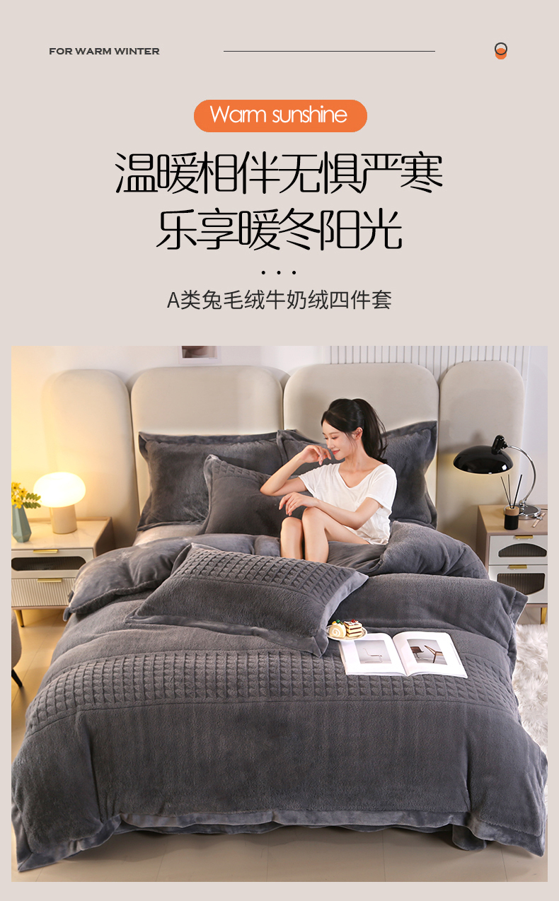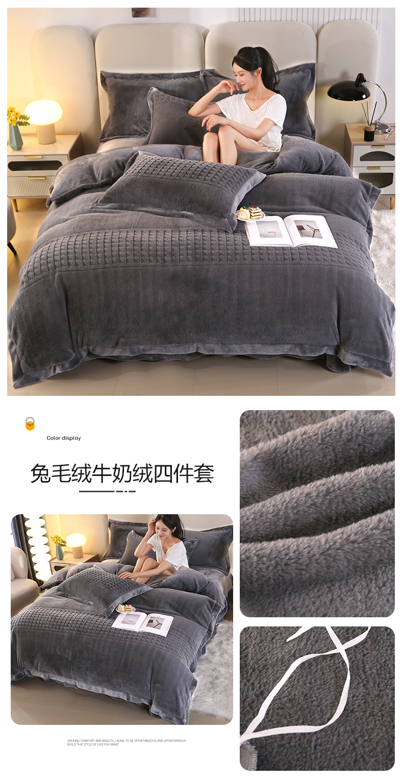 代芙 2024新款高克重电商直播爆款11斤提花兔毛绒牛奶绒四件套 简爱-灰