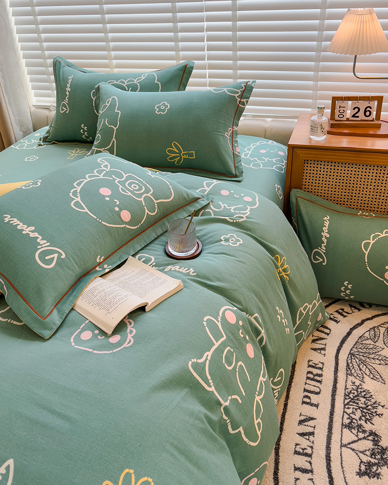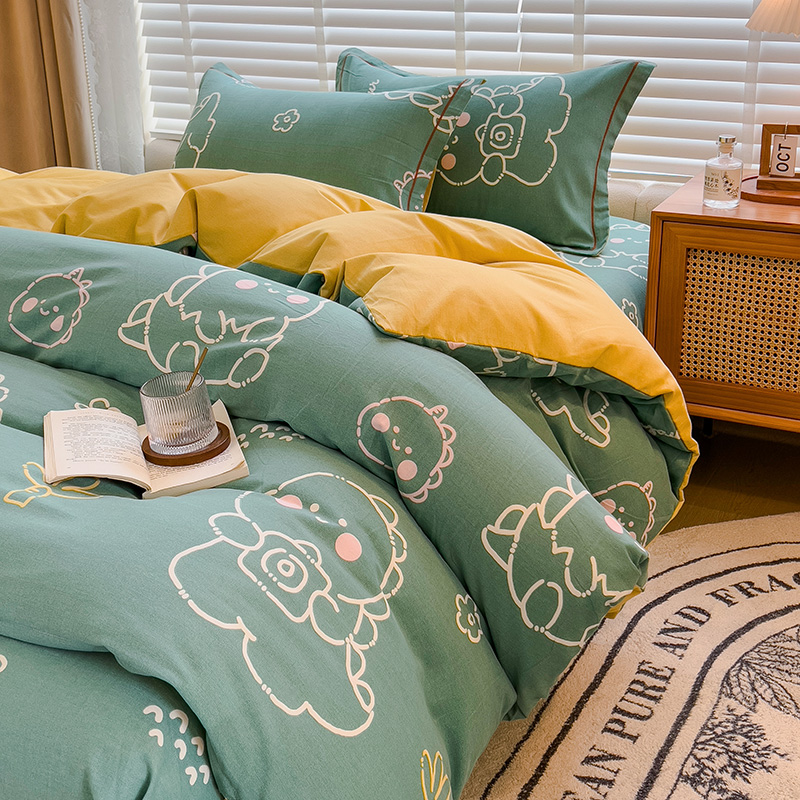 芃成家纺 2023新品磨毛被套 恐龙王国-绿