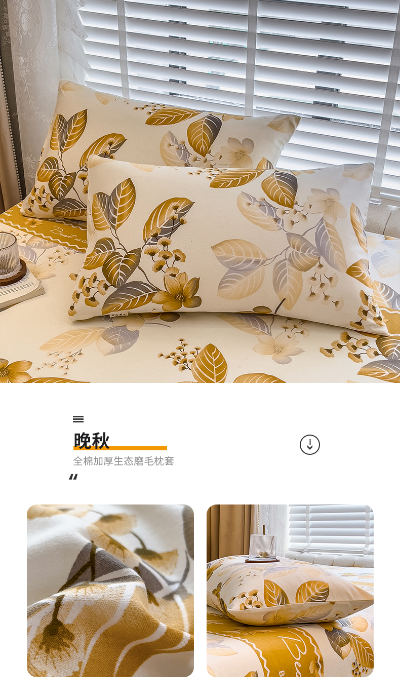 商品名称:芃成家纺 2023新款磨毛系列磨毛枕套 晚秋
