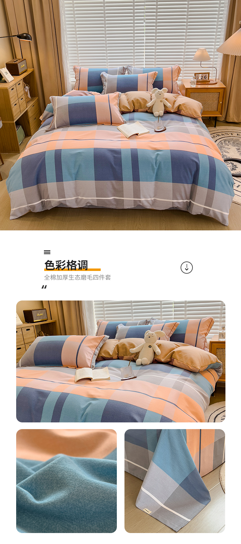 商品名称:芃成家纺 2023新款磨毛四件套 色彩格调