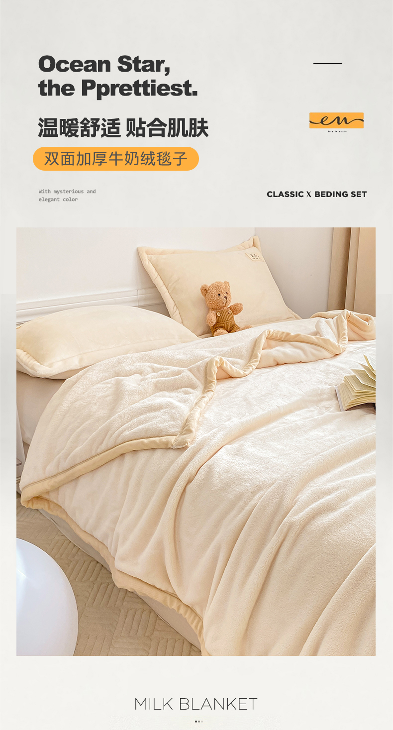 当前位置: 91家纺网 > 商品网购 > 毛毯休闲毯绒毯 > 毛毯 > 慕木家纺 2025新款牛奶绒双面绒纯色印花毛毯盖毯三件套 米白