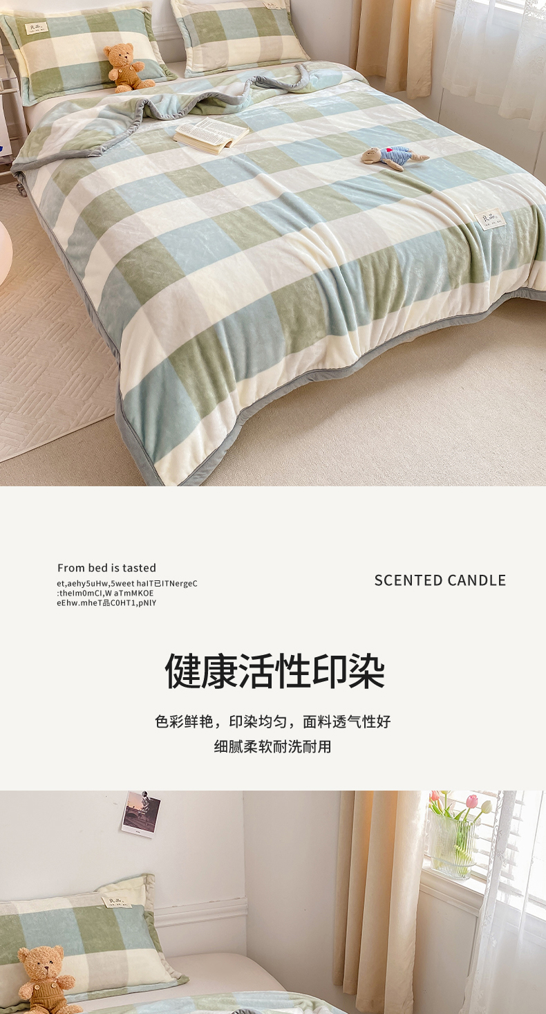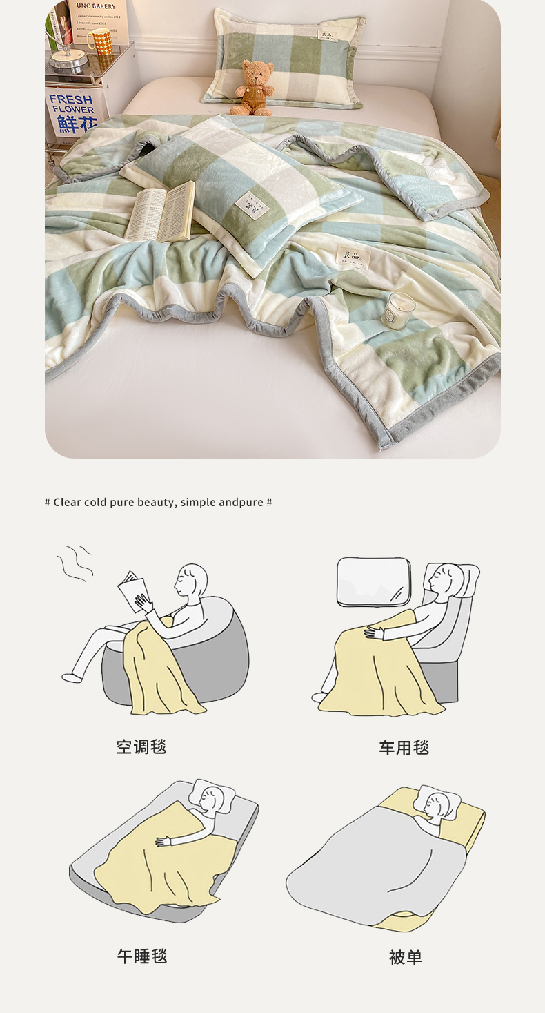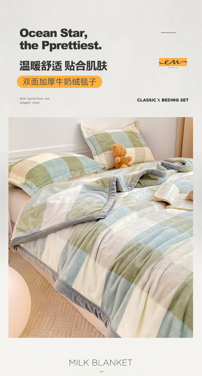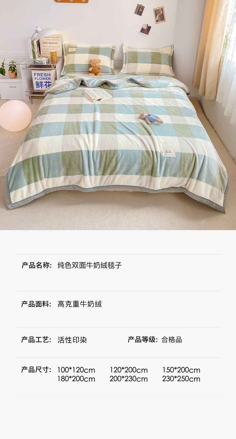 当前位置: 91家纺网 > 商品网购 > 毛毯休闲毯绒毯 > 毛毯 > 慕木家纺 2025新款牛奶绒双面绒纯色印花毛毯盖毯三件套 绿大格
