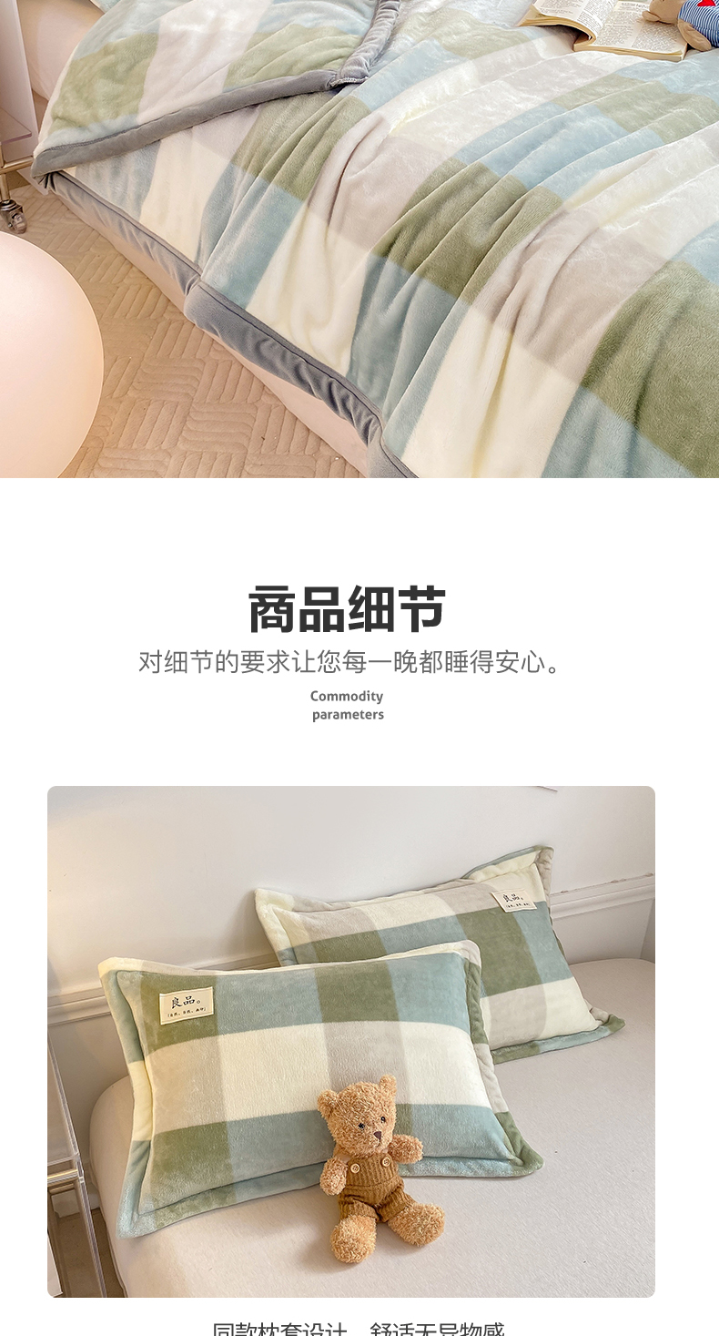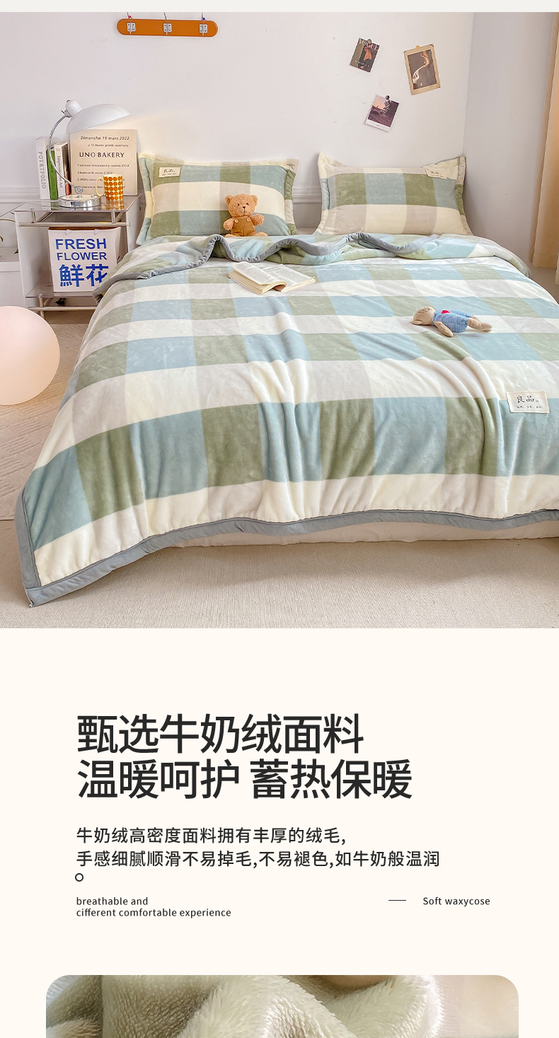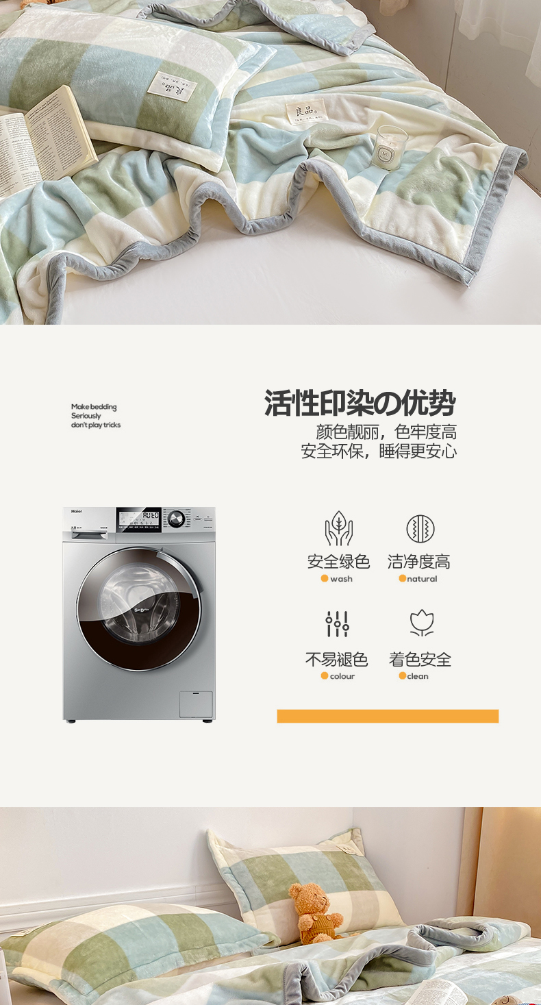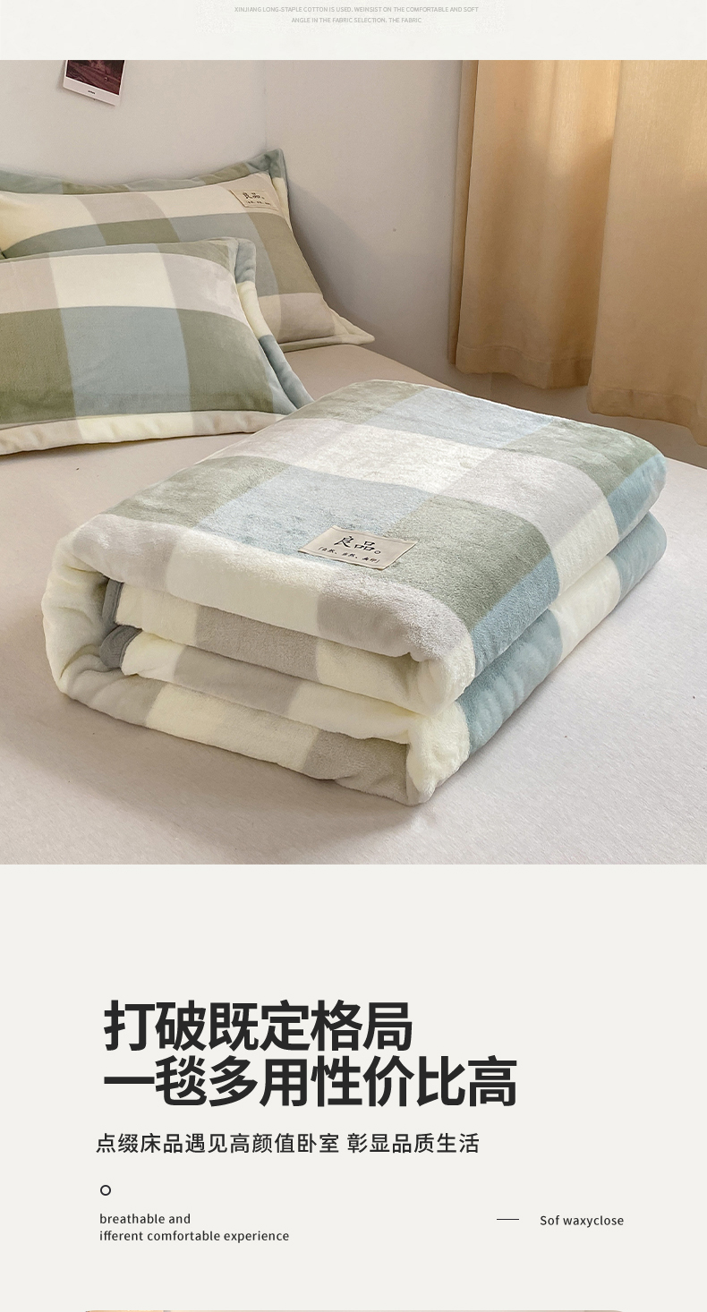 当前位置: 91家纺网 > 商品网购 > 毛毯休闲毯绒毯 > 毛毯 > 慕木家纺 2025新款牛奶绒双面绒纯色印花毛毯盖毯三件套 绿大格