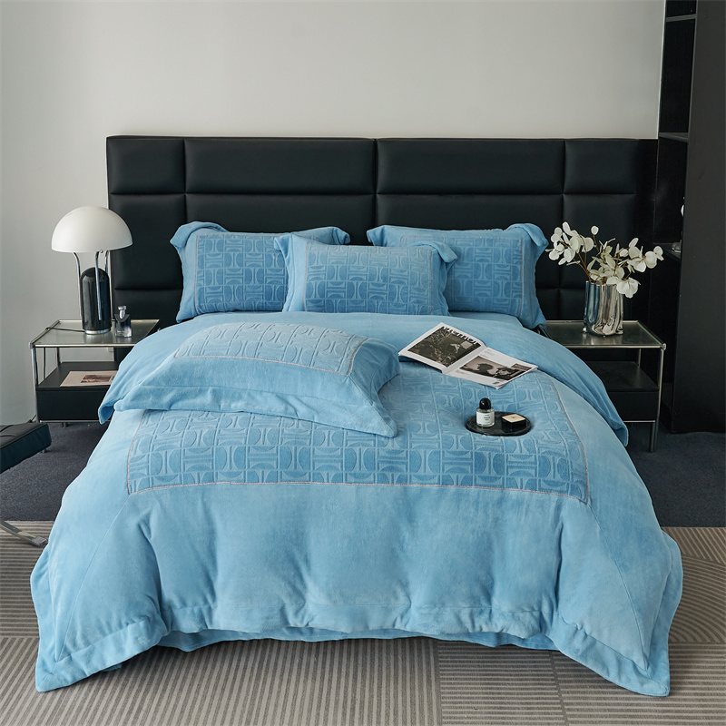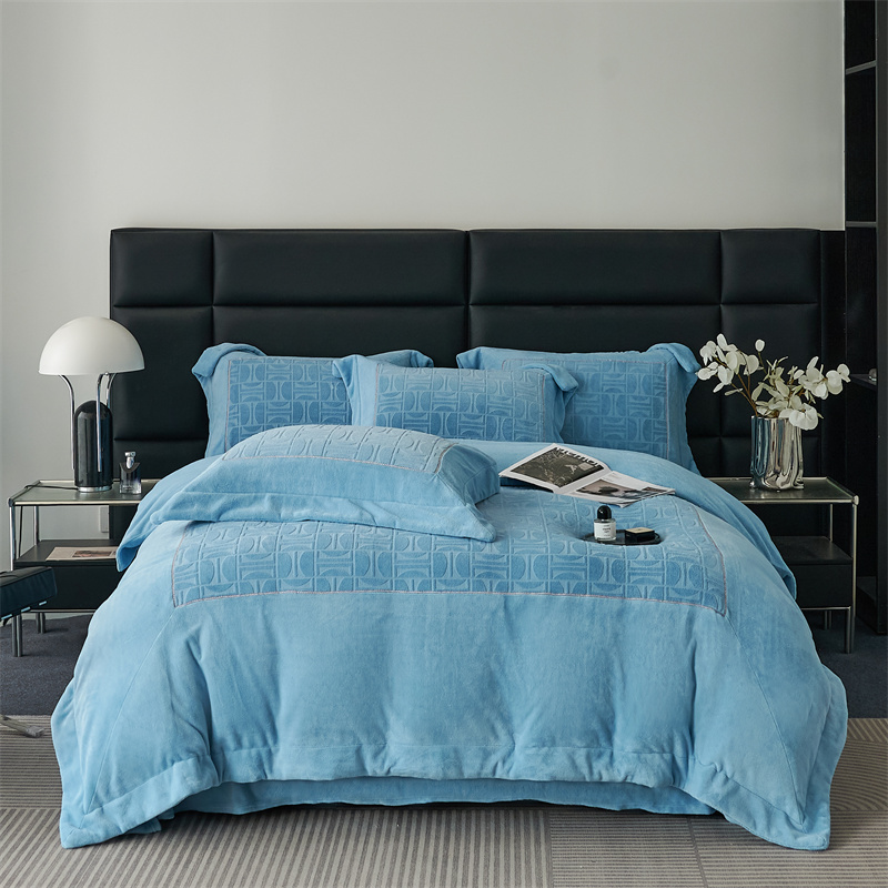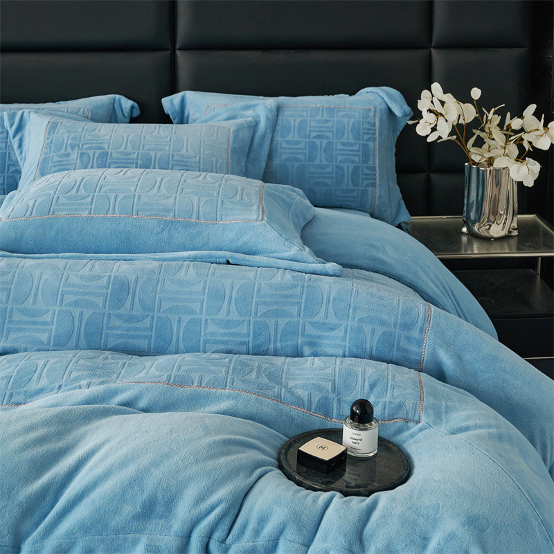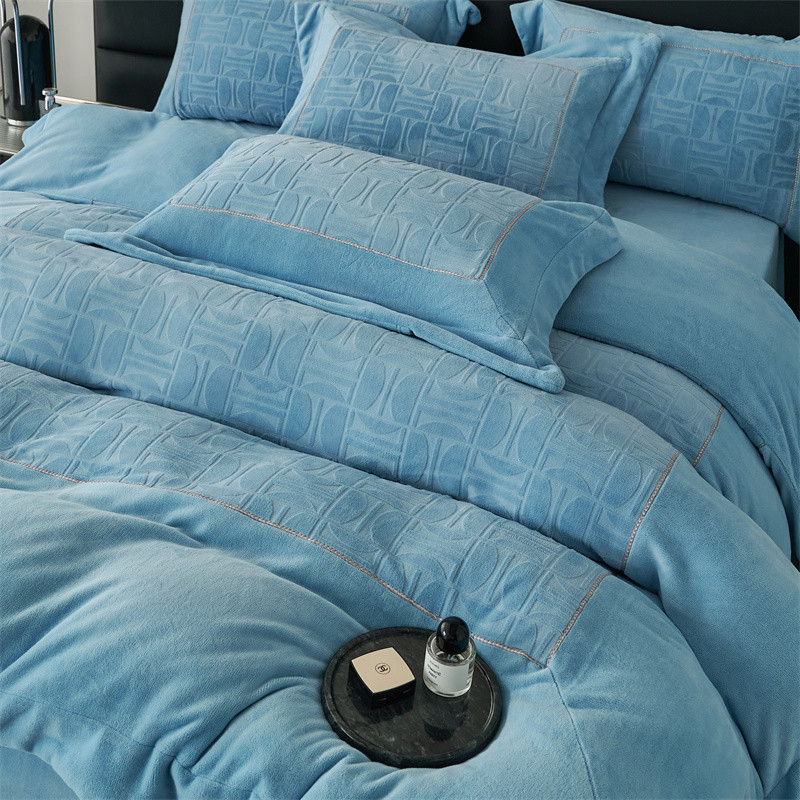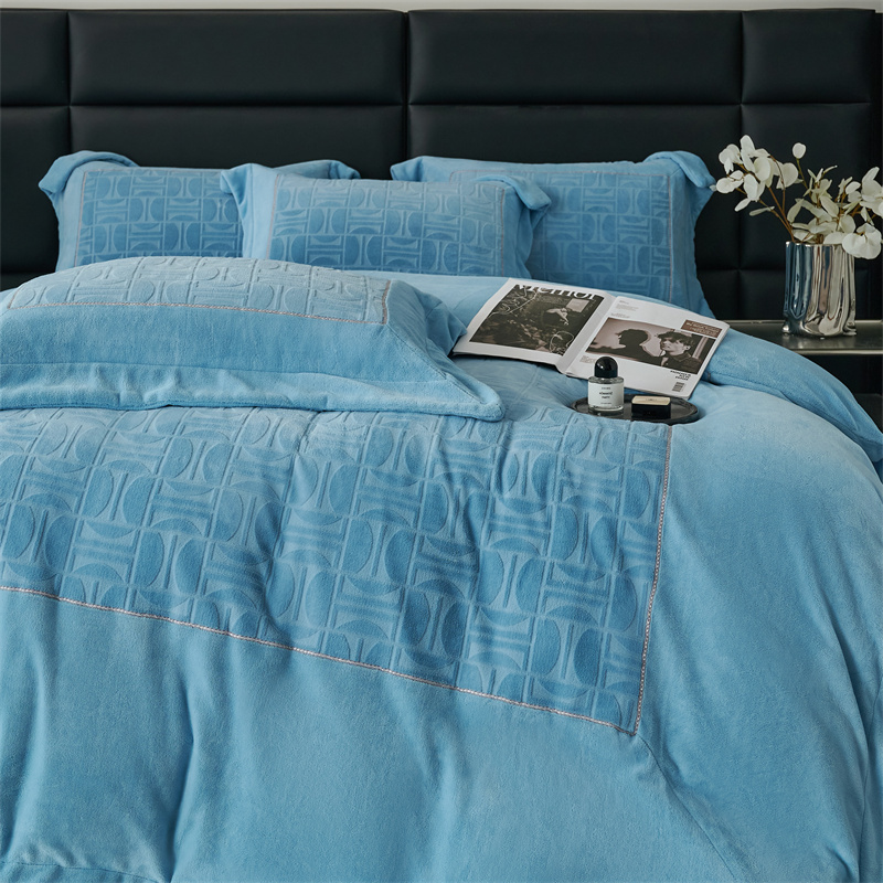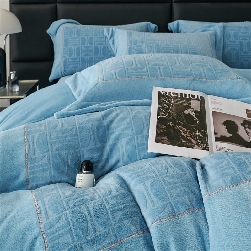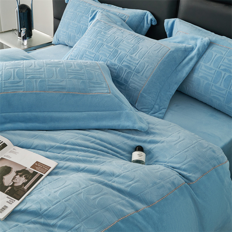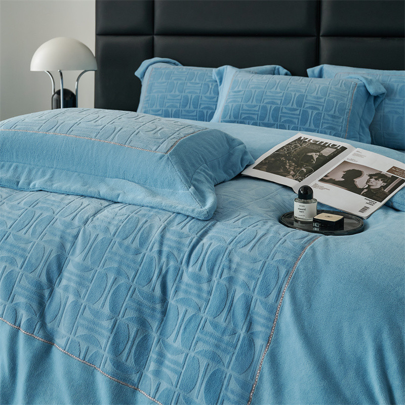 时亿 2023新款250g牛奶绒四件套凹凸有致 清透蓝