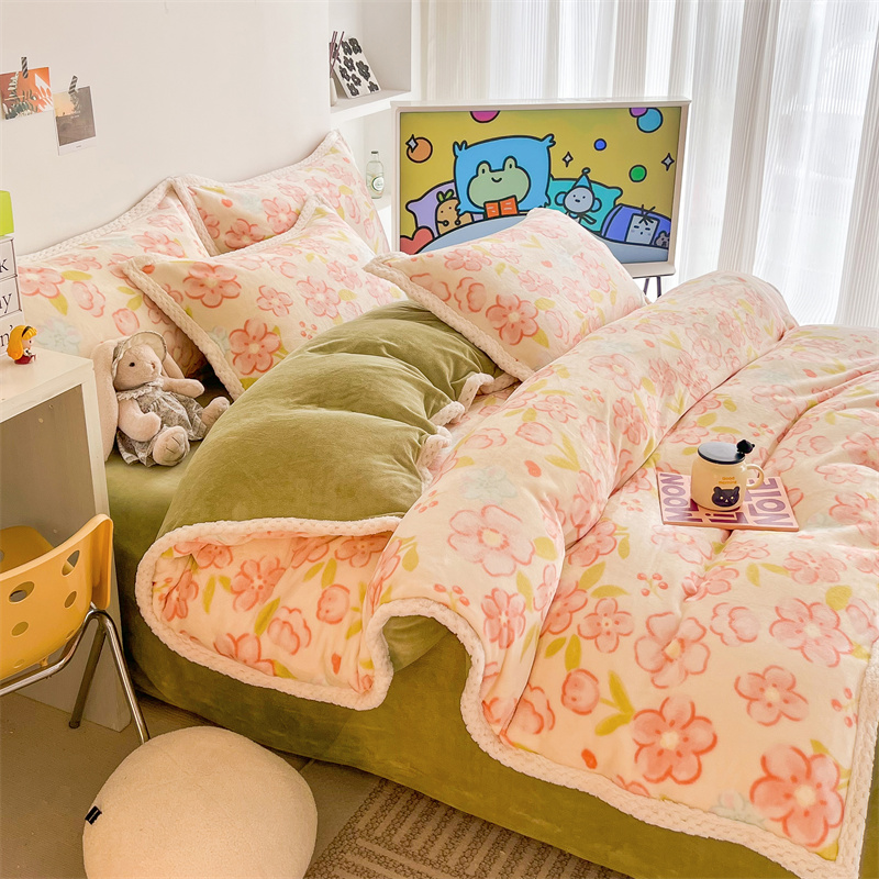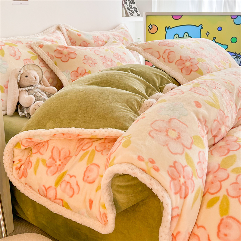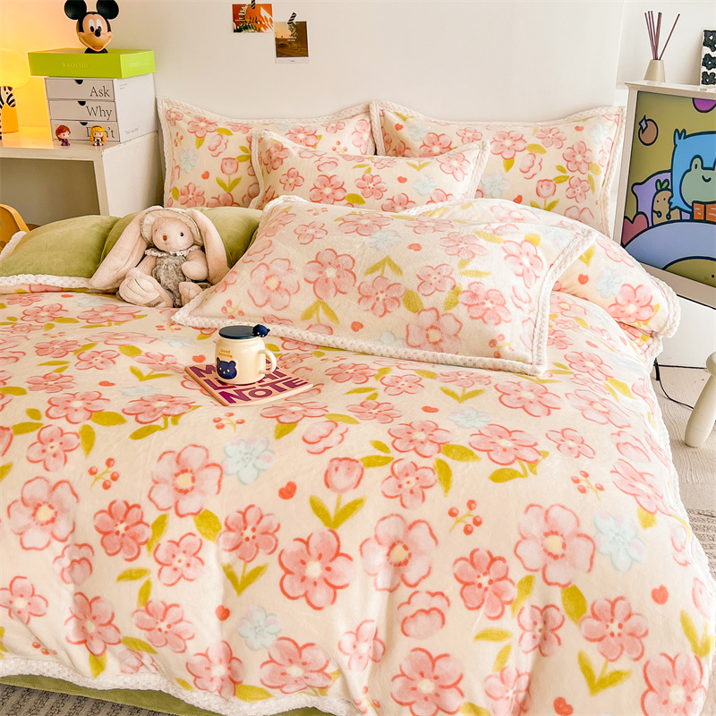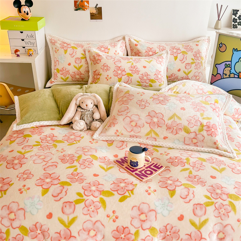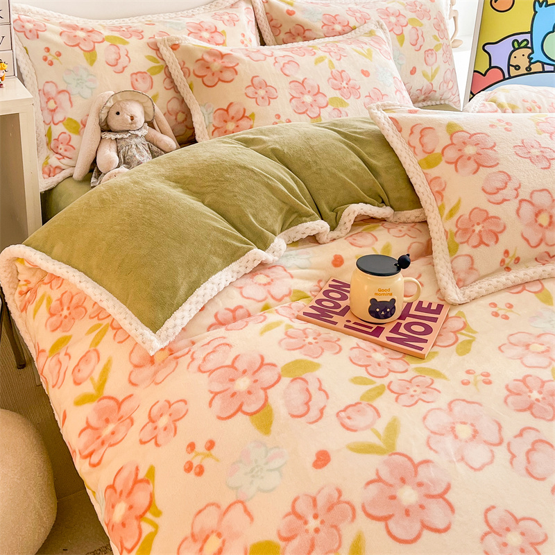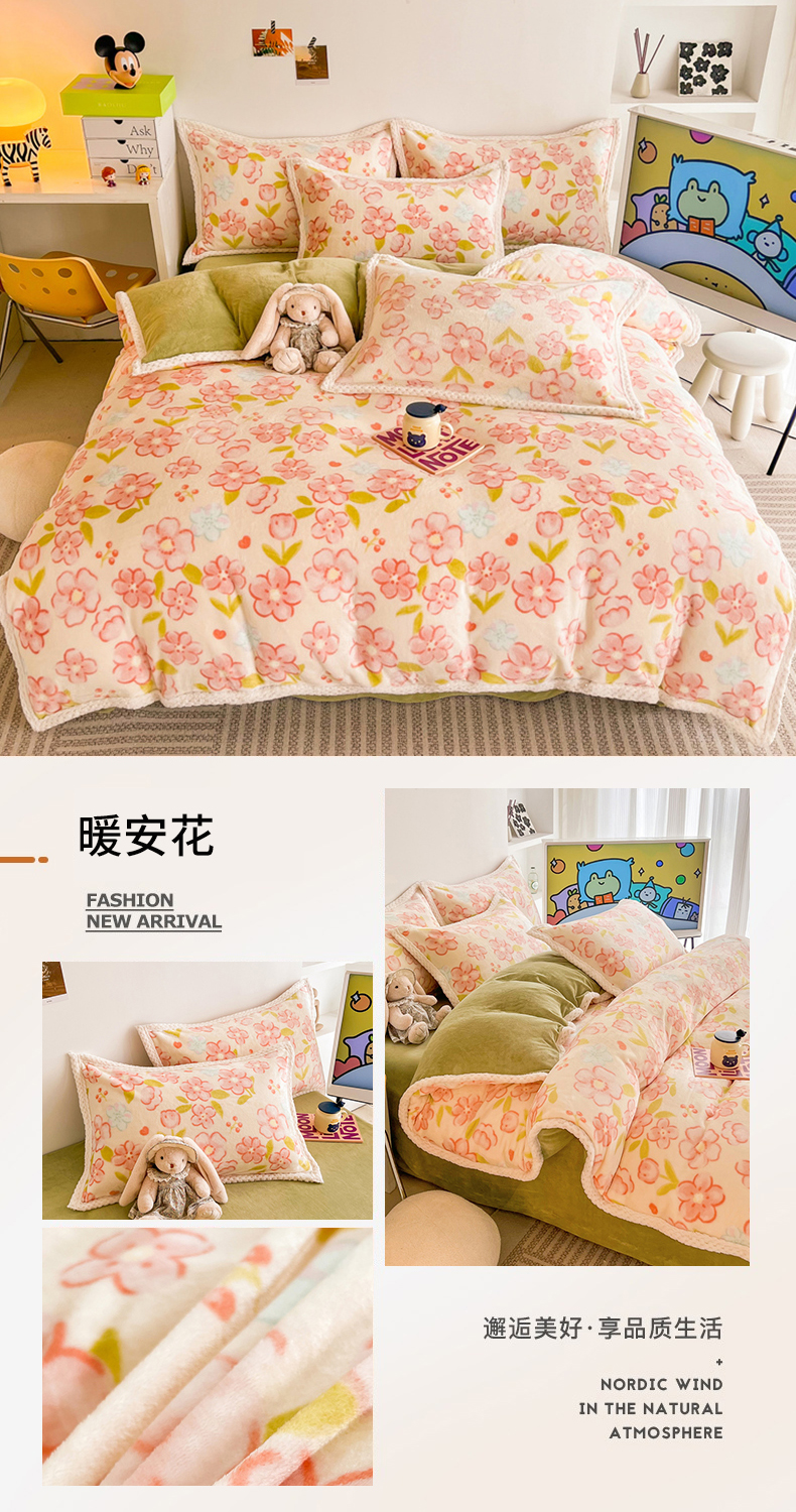 川悦生活 2023新款牛奶绒200克宽边四件套 宽边暖安花