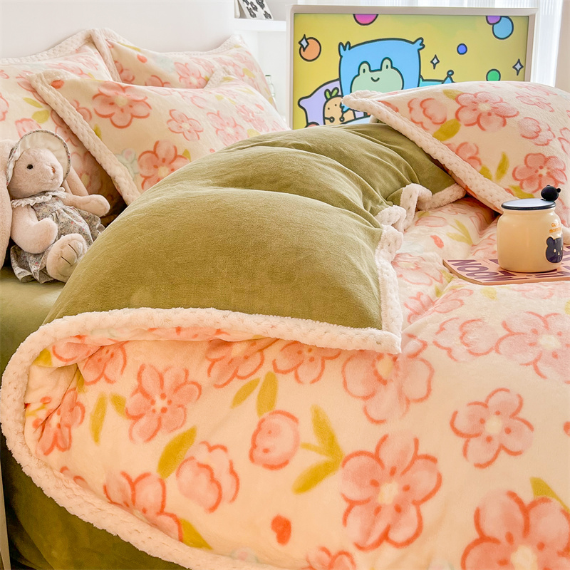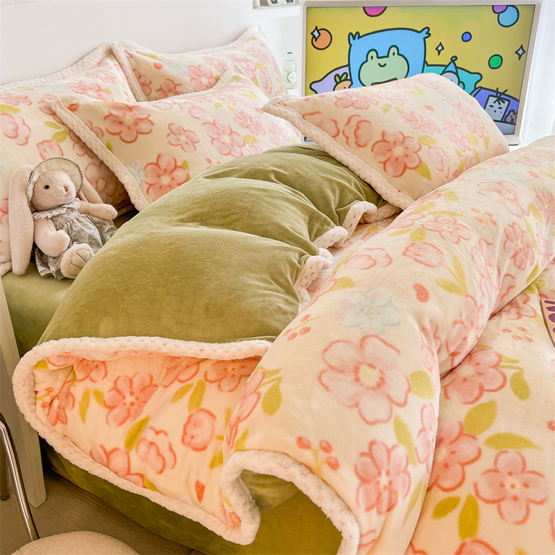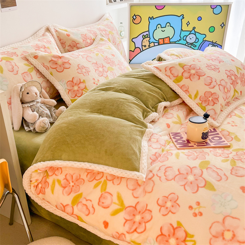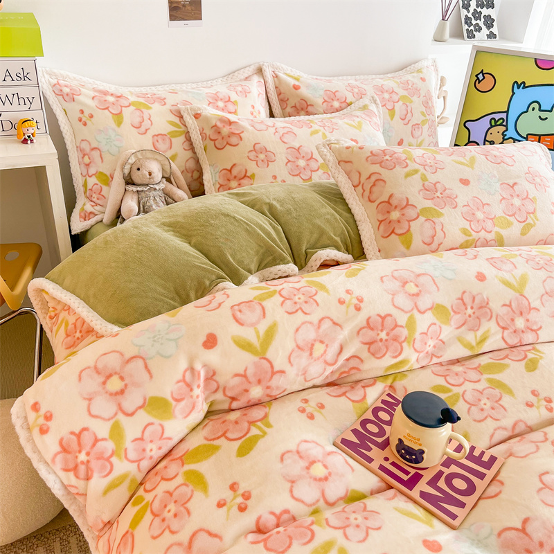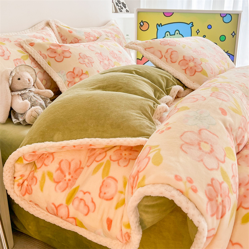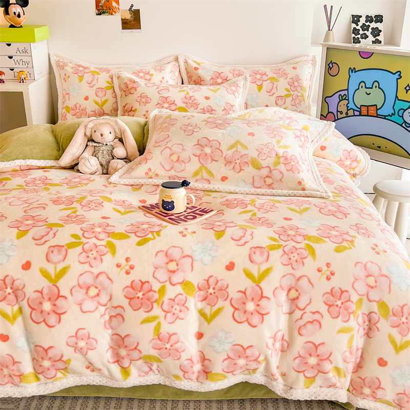 川悦生活 2023新款牛奶绒200克宽边四件套 宽边暖安花