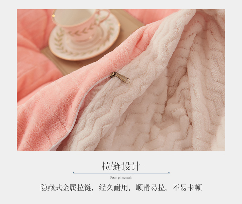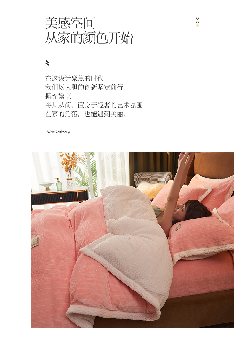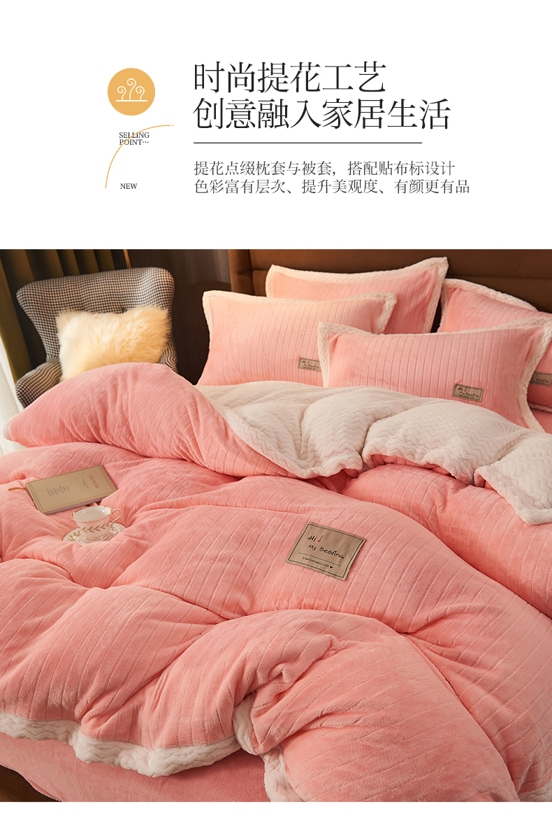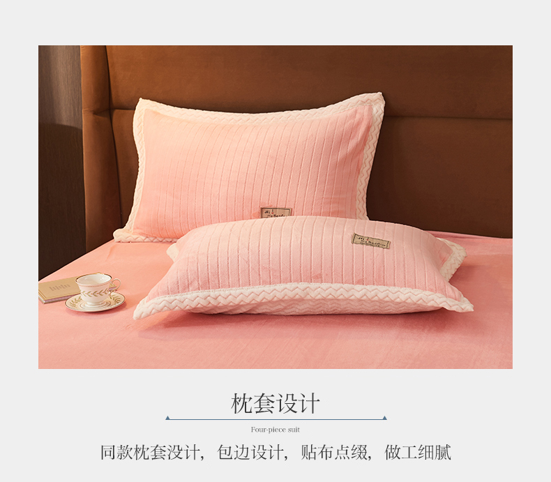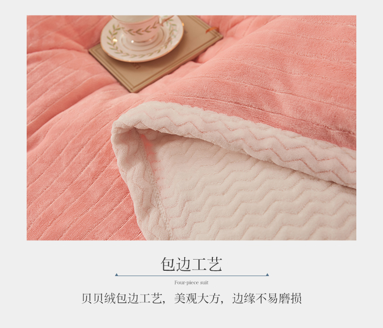 商品名称:全季家居2023新款纯色印花抗静电大包边牛奶绒贝贝绒四件套-纯色 少女粉