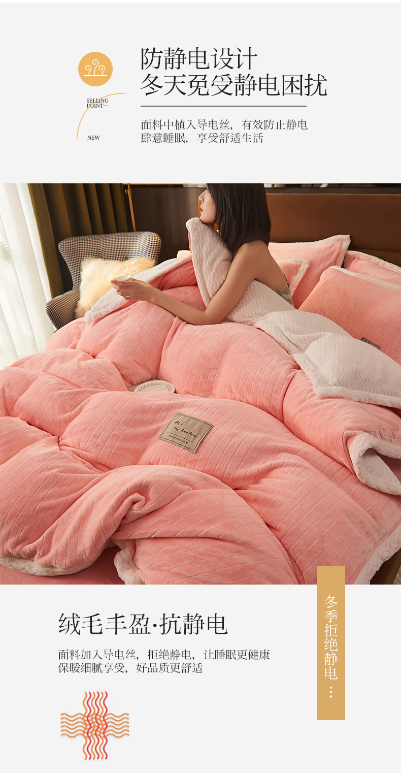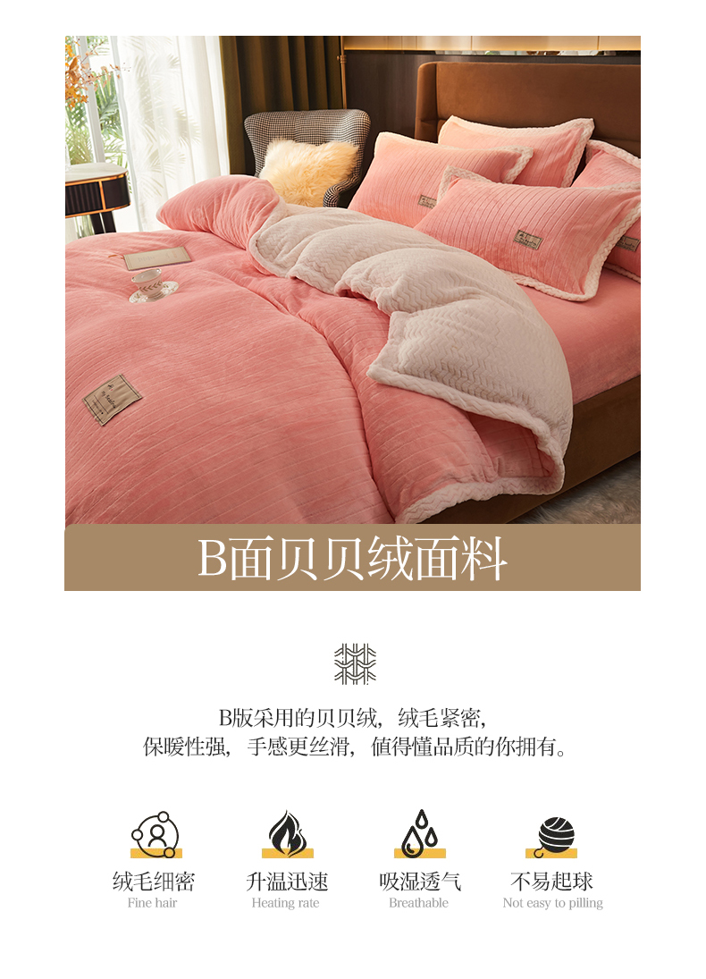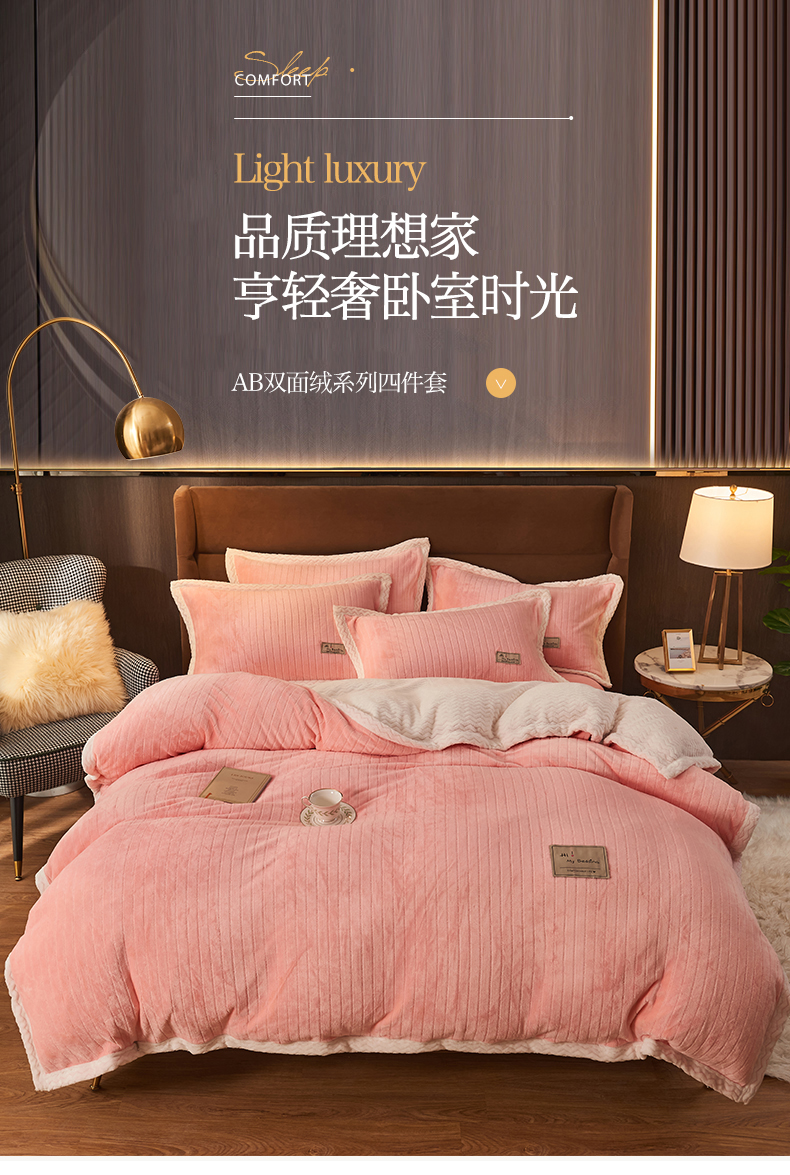商品名称:全季家居2023新款纯色印花抗静电大包边牛奶绒贝贝绒四件套-纯色 少女粉
