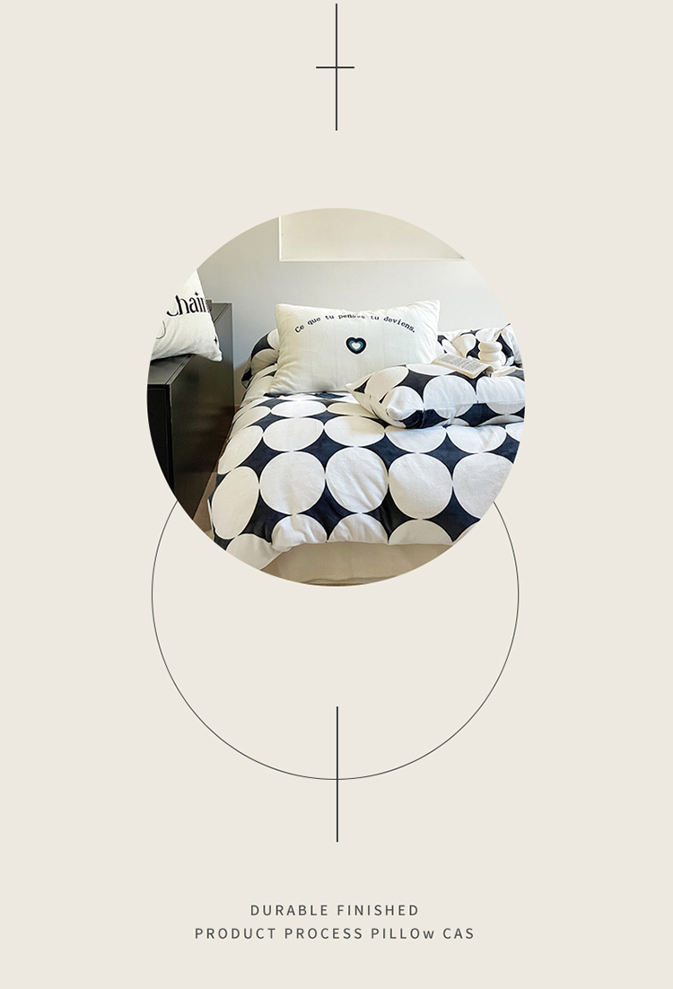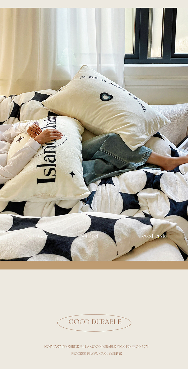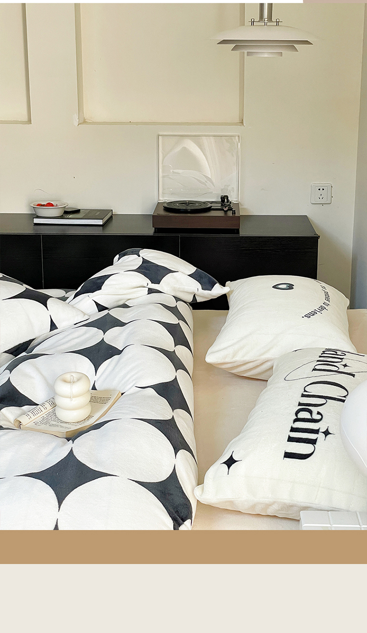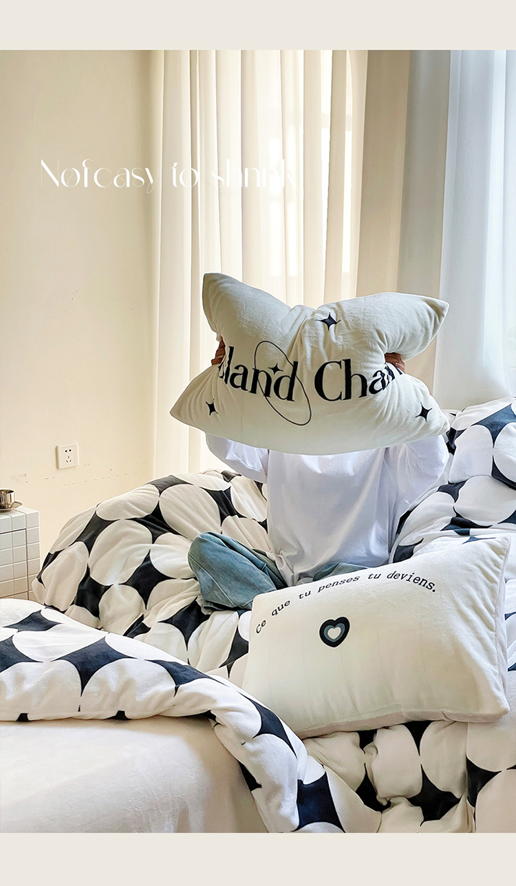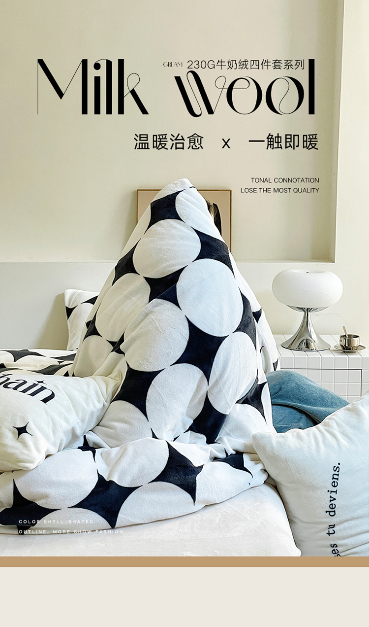 圆岛家纺 2023新款原创牛奶绒印花保暖四件套 黑白菱星