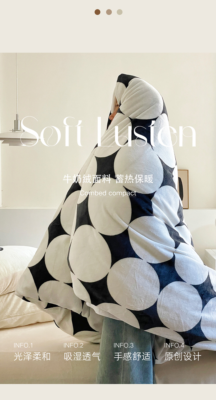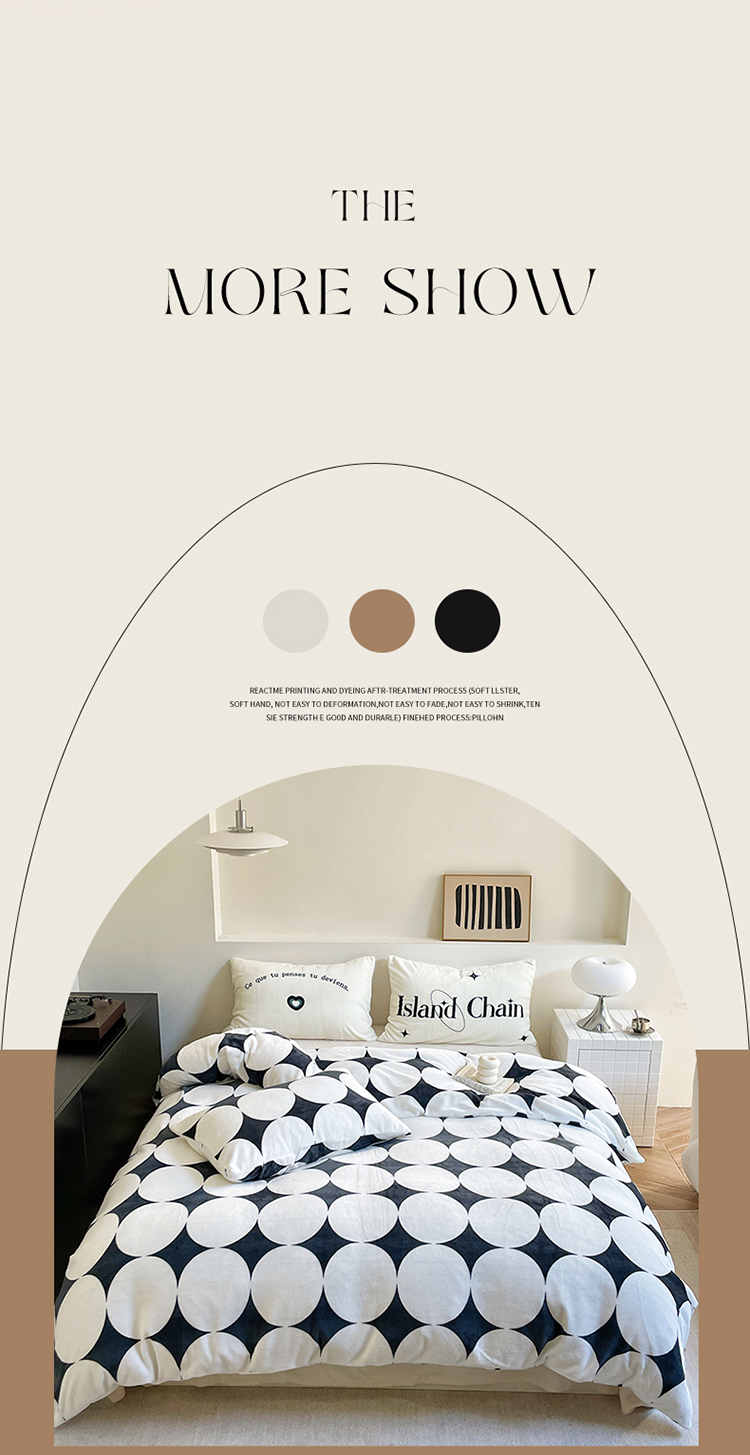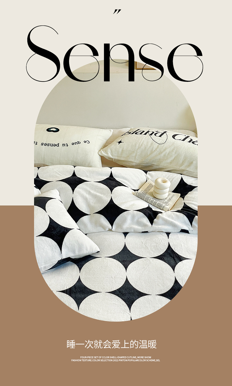商品名称:圆岛家纺 2023新款原创牛奶绒印花保暖四件套 黑白菱星