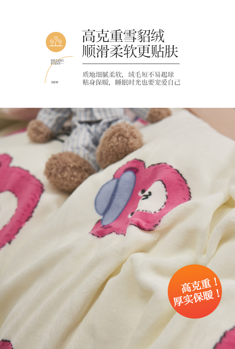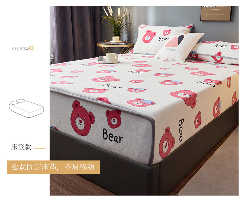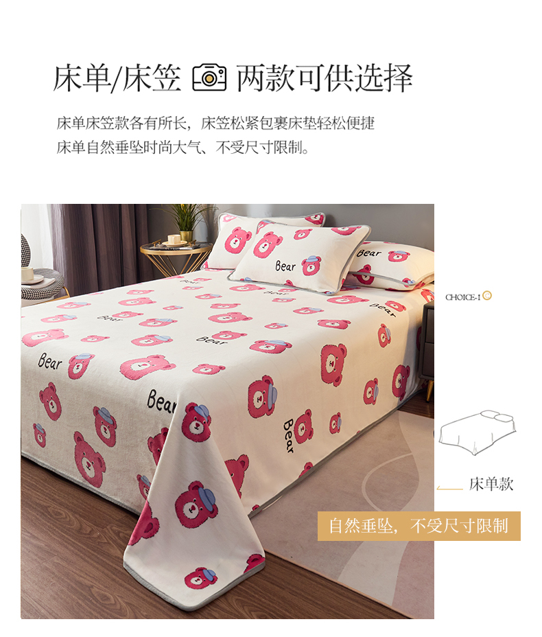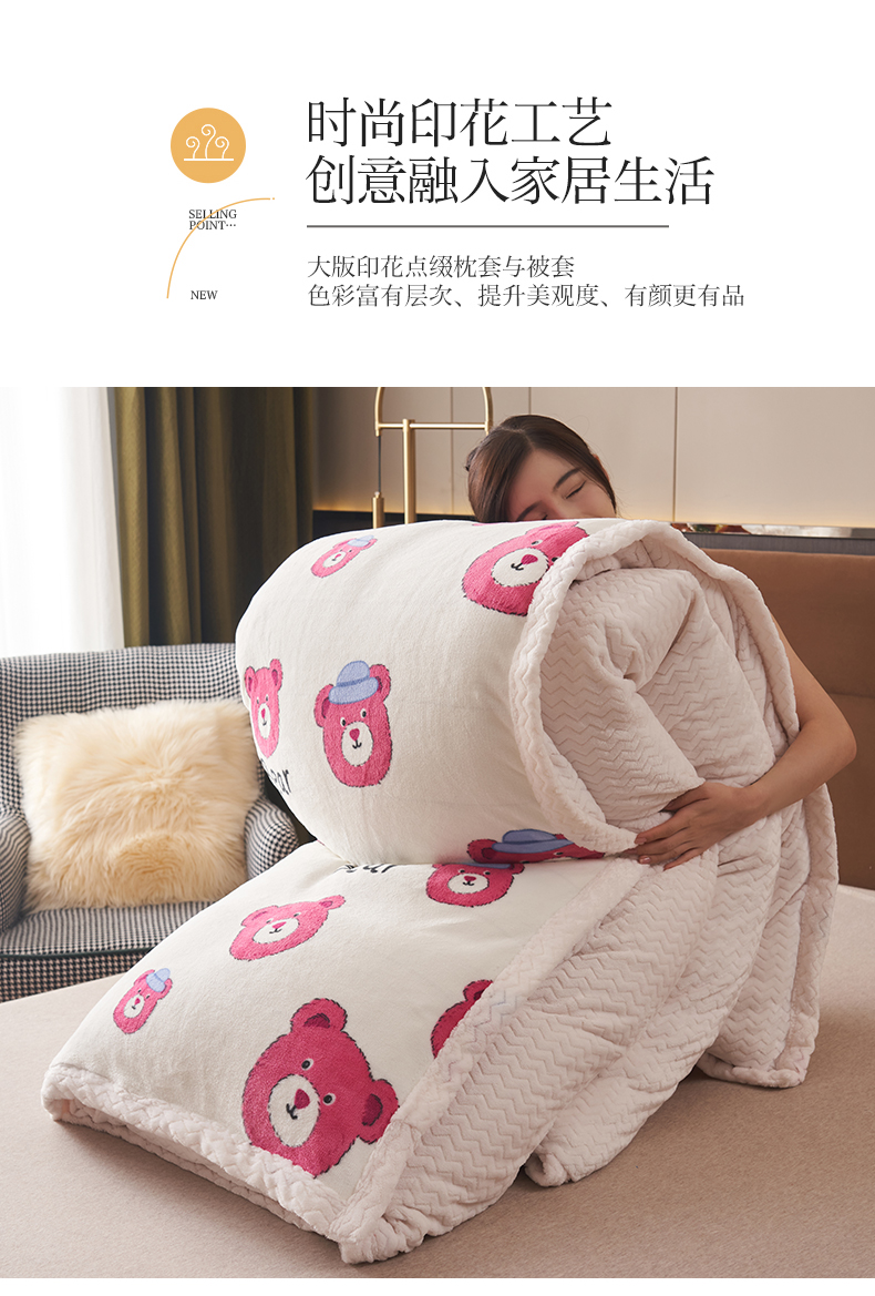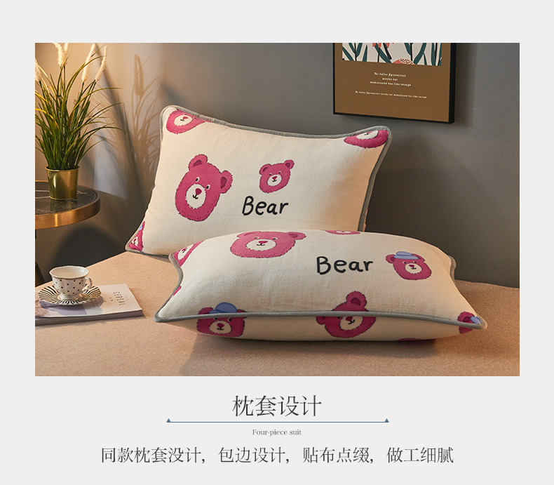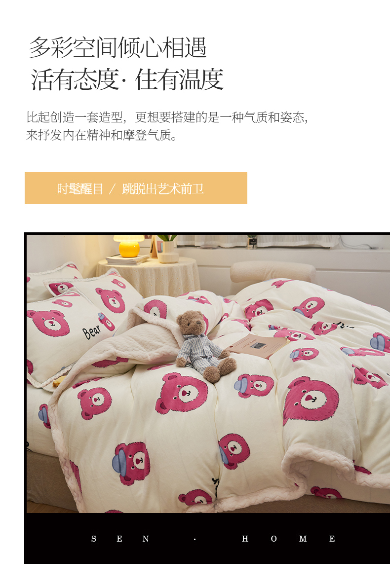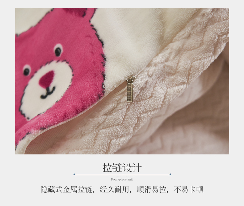 商品名称:全季家居2023新款纯色印花抗静电大包边牛奶绒贝贝绒四件套-印花 粉熊派