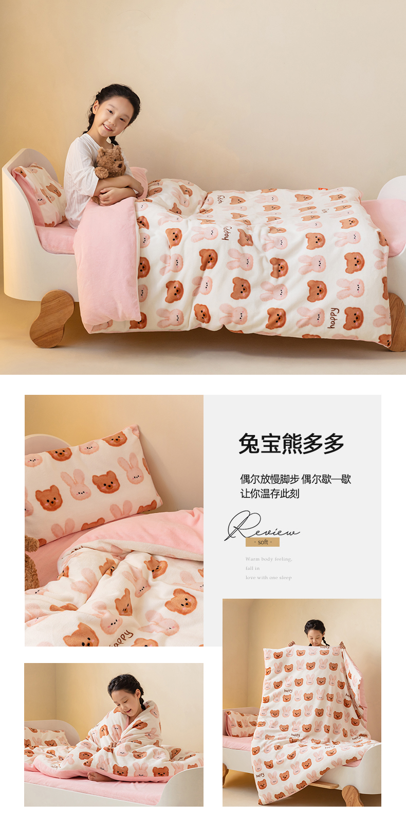 • 91家纺网 家纺一手货源 找家纺 艾佳宝贝 2023新款牛奶绒多功能儿童盖毯式可脱卸被子 兔宝熊多多
