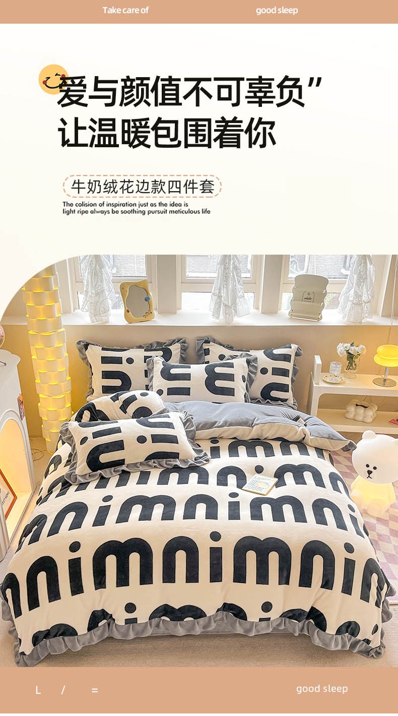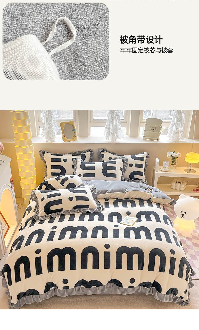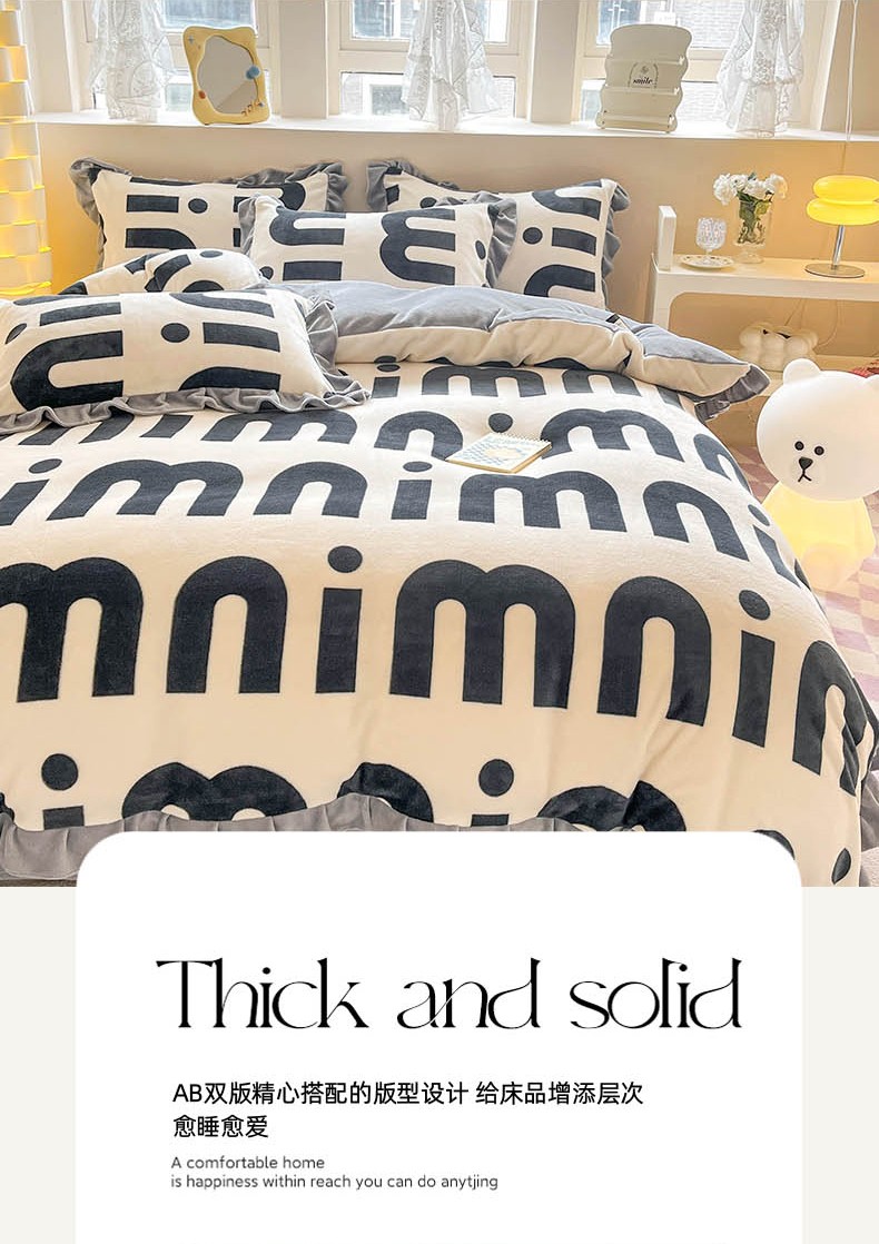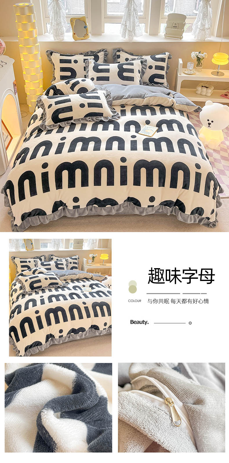 米莱 2023新款印花韩版牛奶绒四件套 趣味字母