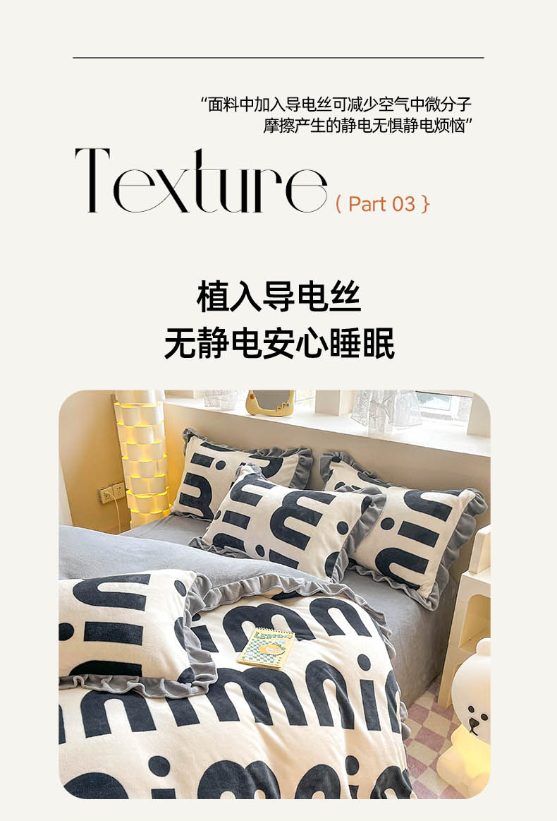 商品名称:米莱 2023新款印花韩版牛奶绒四件套 趣味字母