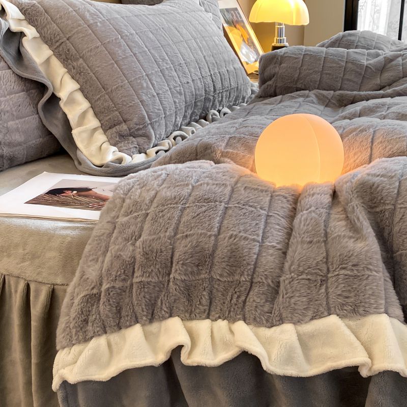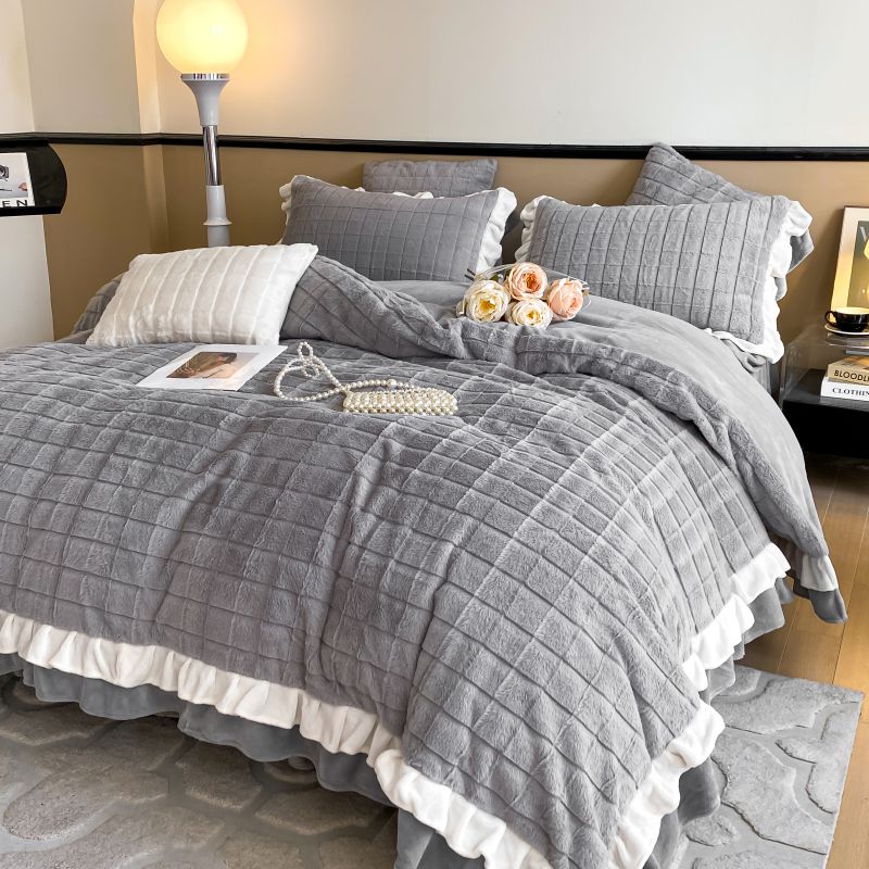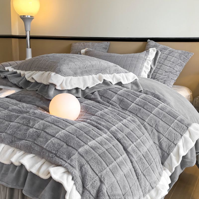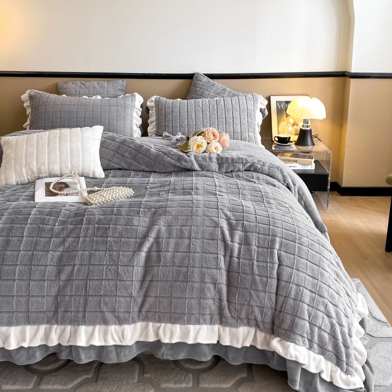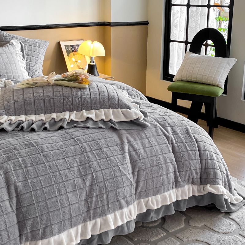 当前位置: 91家纺网 > 商品网购 > 床品套件 > 四件套 > 兔毛绒四件套 > 金麦家纺 2023新款皮草级兔兔绒四件套 黛美娜-绅士灰