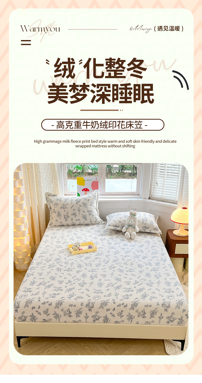 妖妖家纺 2023新款牛奶绒单床笠 漫野