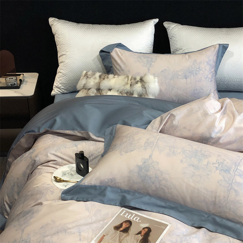 商品名称:涞澳 2023新款100支全棉数码印花四件套 陌上花-蓝