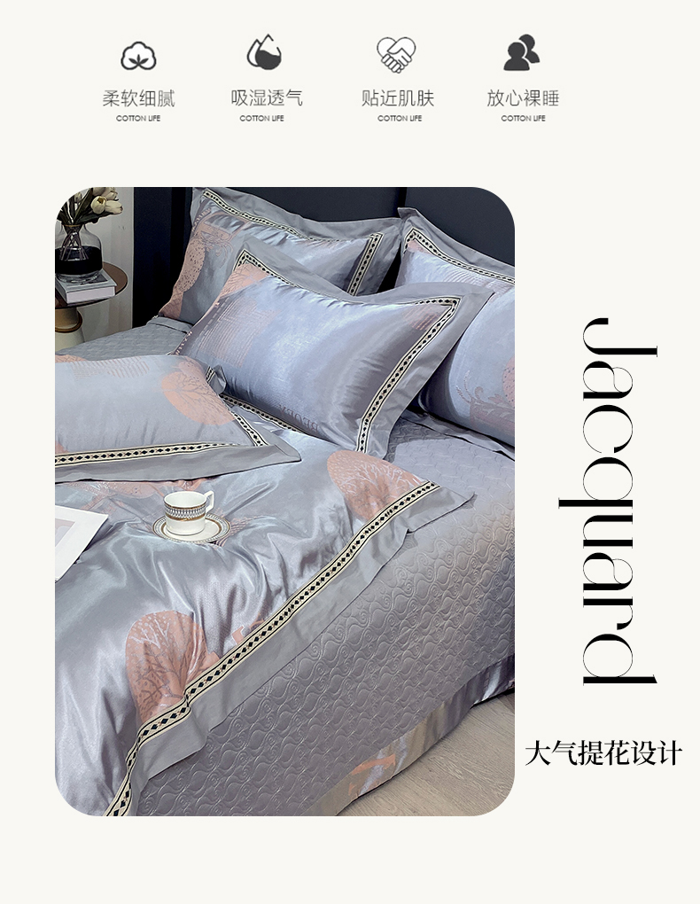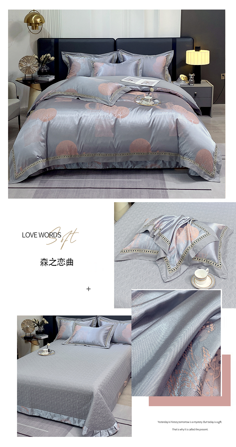 商品名称:小时代家纺 2023新款纯棉贡缎提花夹棉床盖四件套 森之恋曲
