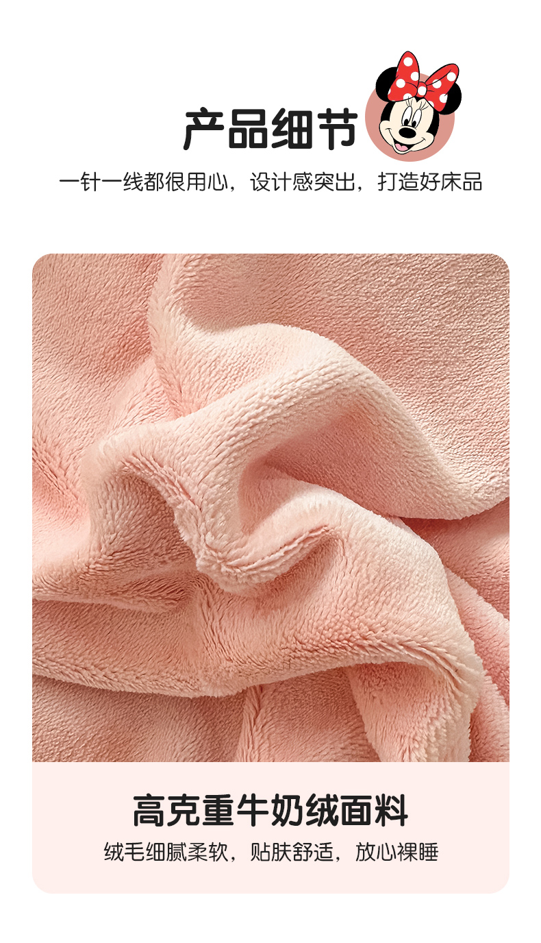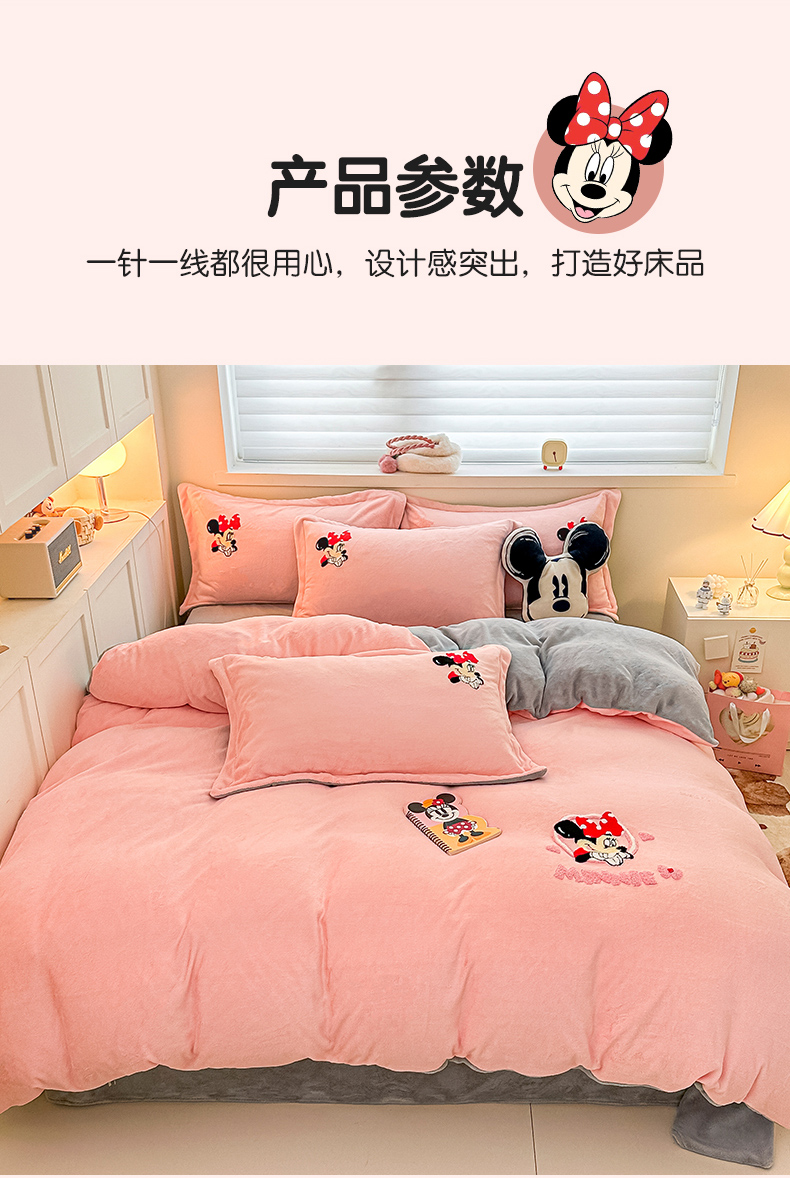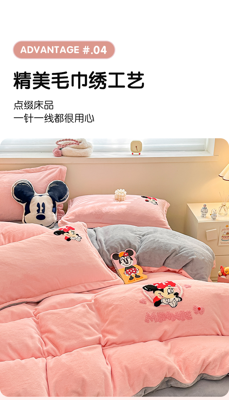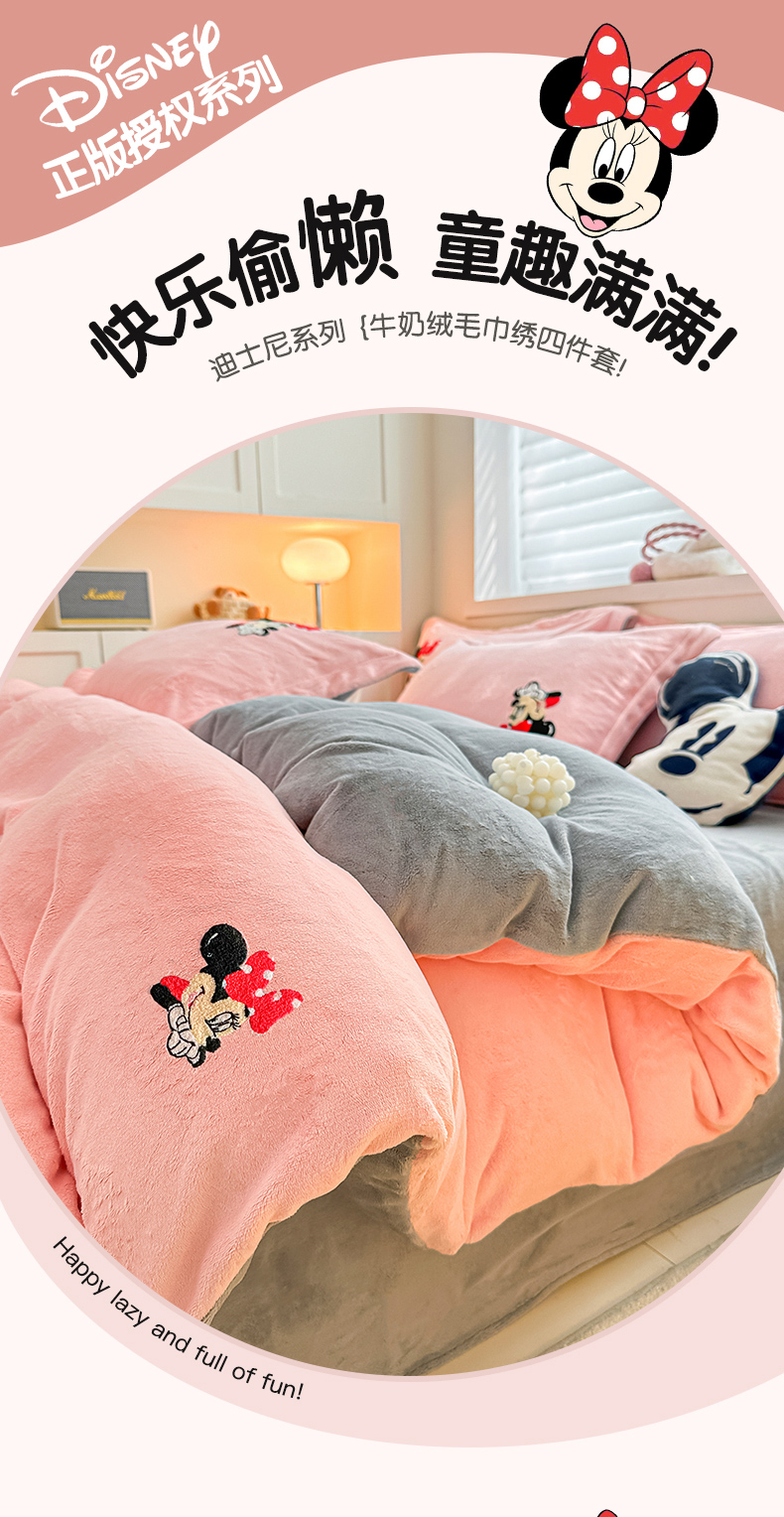 商品名称:丽美人家纺 2023新款迪士尼系列牛奶绒毛巾绣四件套 米妮