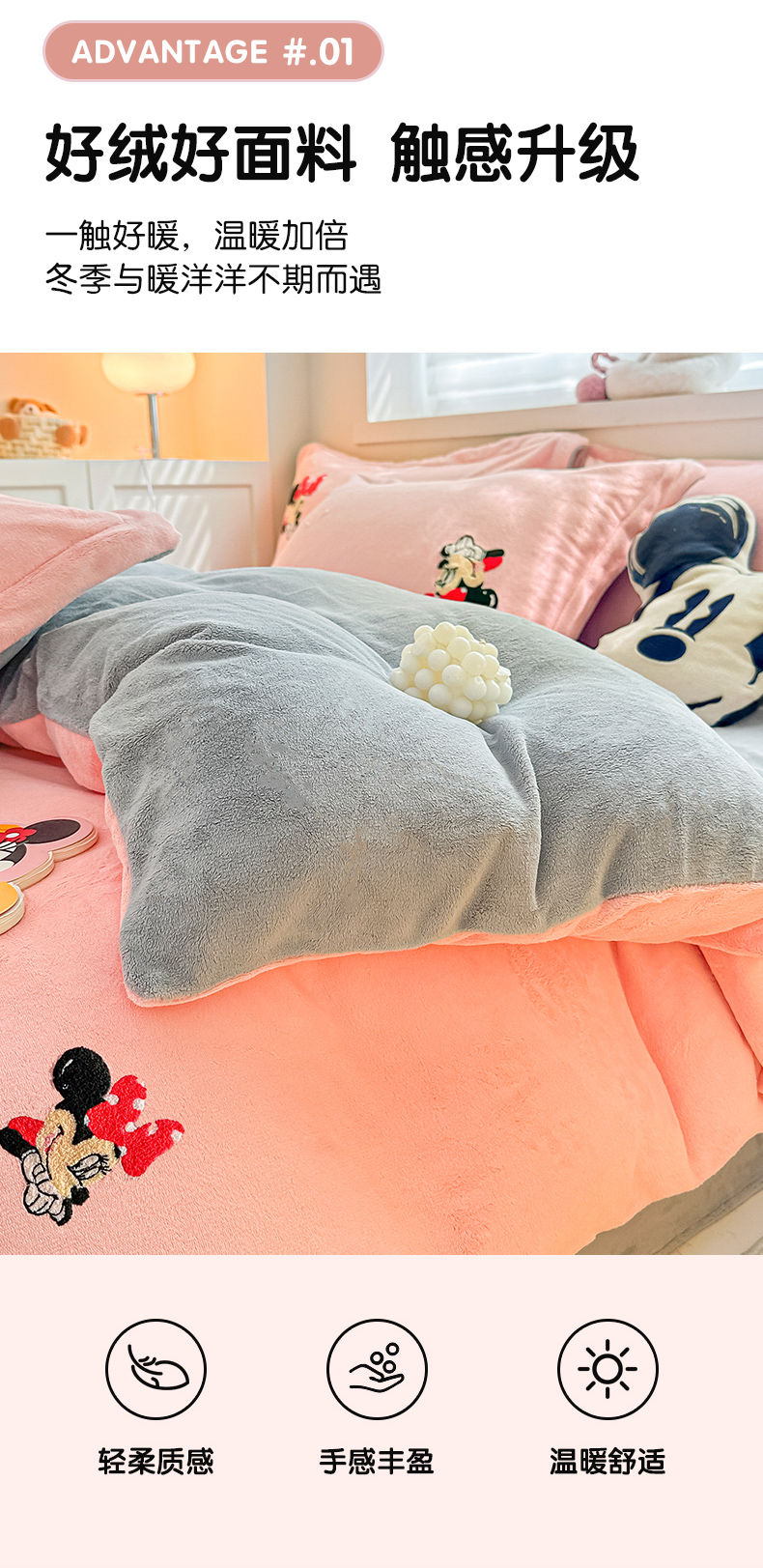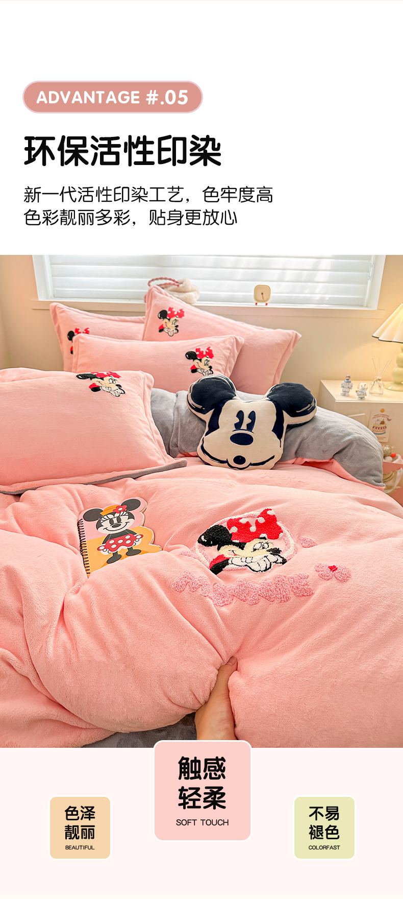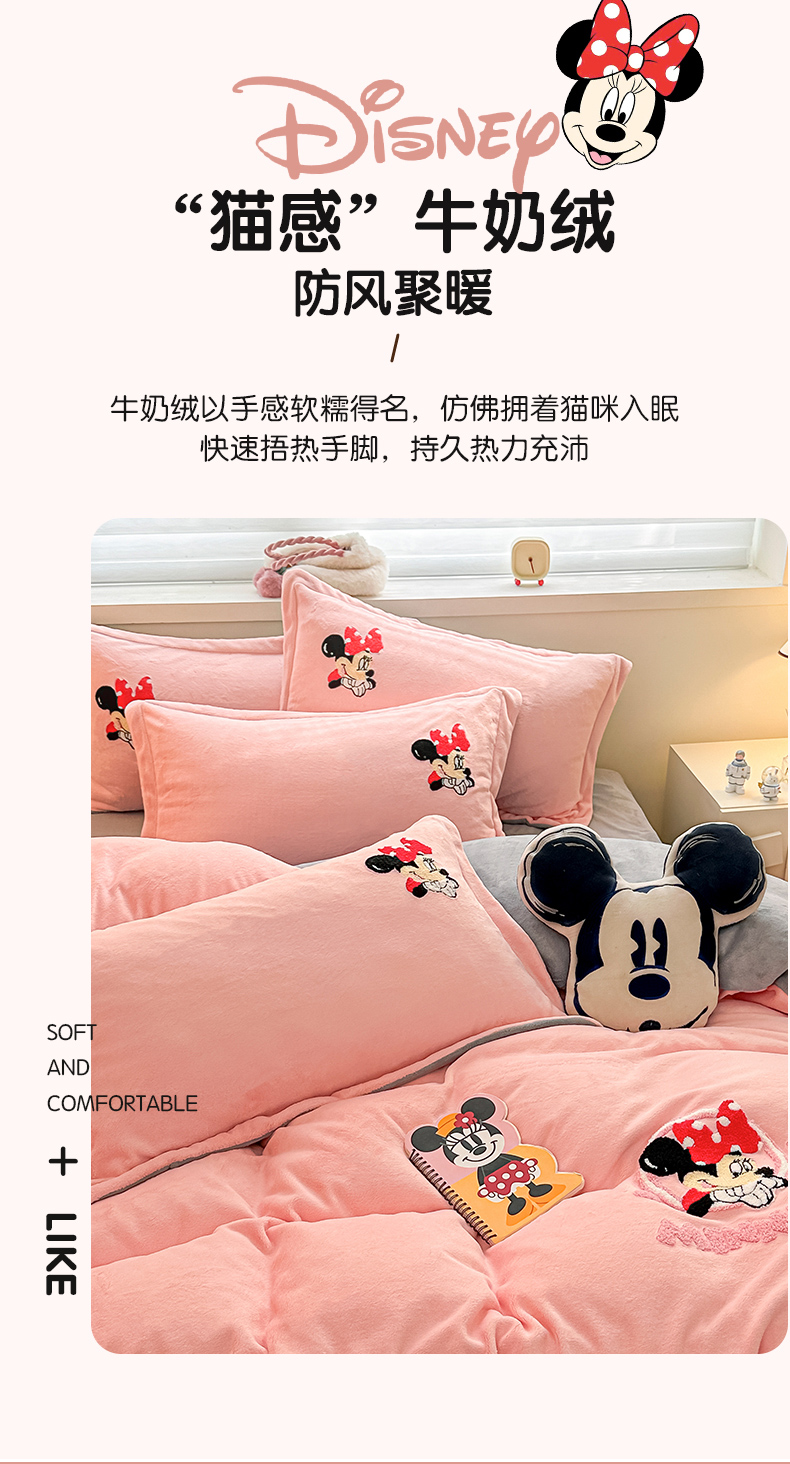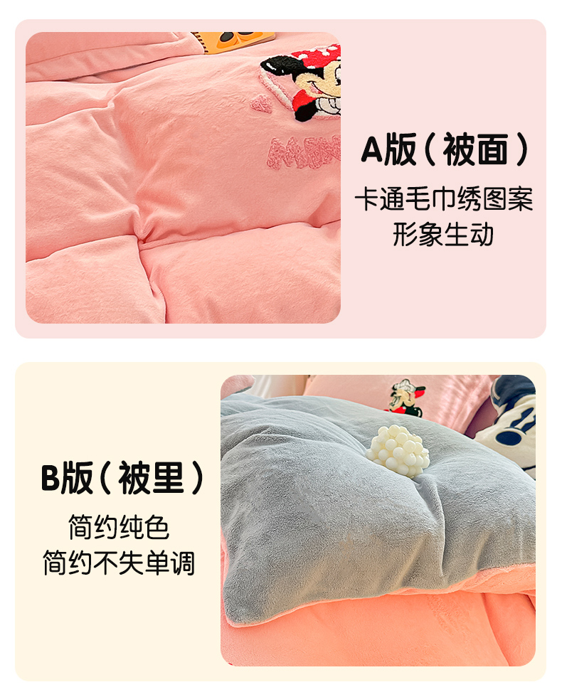 商品名称:丽美人家纺 2023新款迪士尼系列牛奶绒毛巾绣四件套 米妮