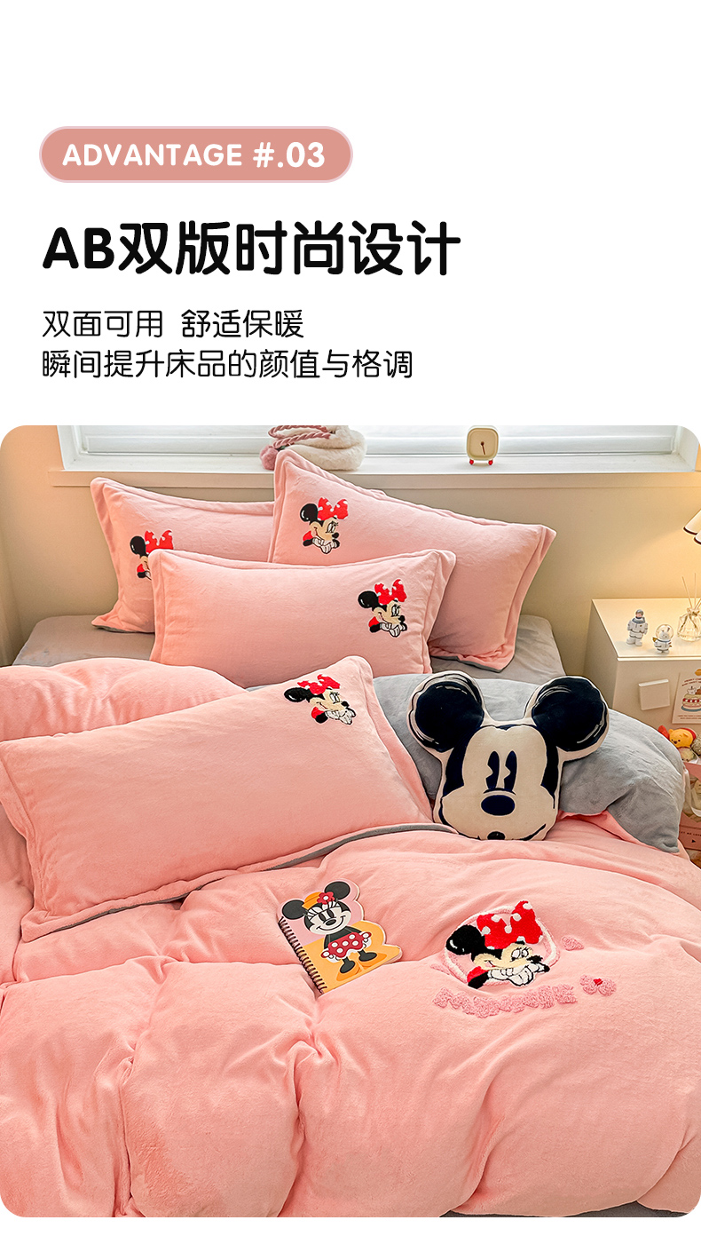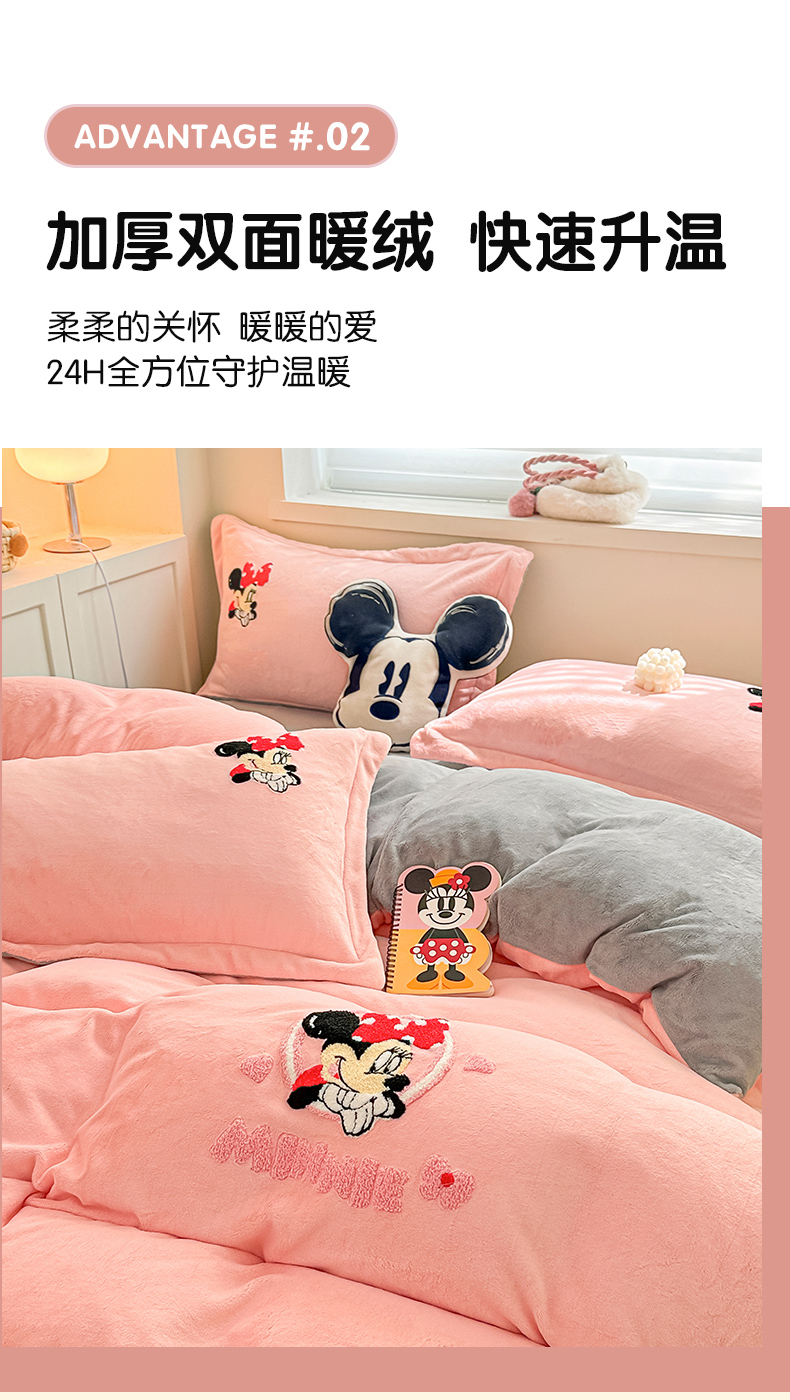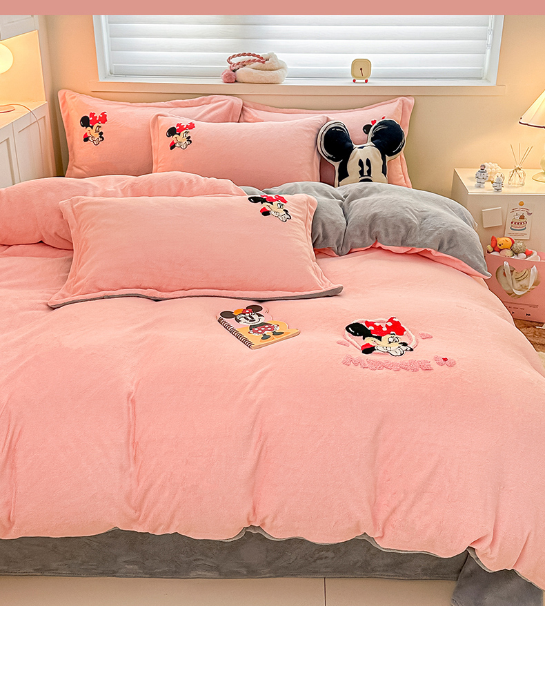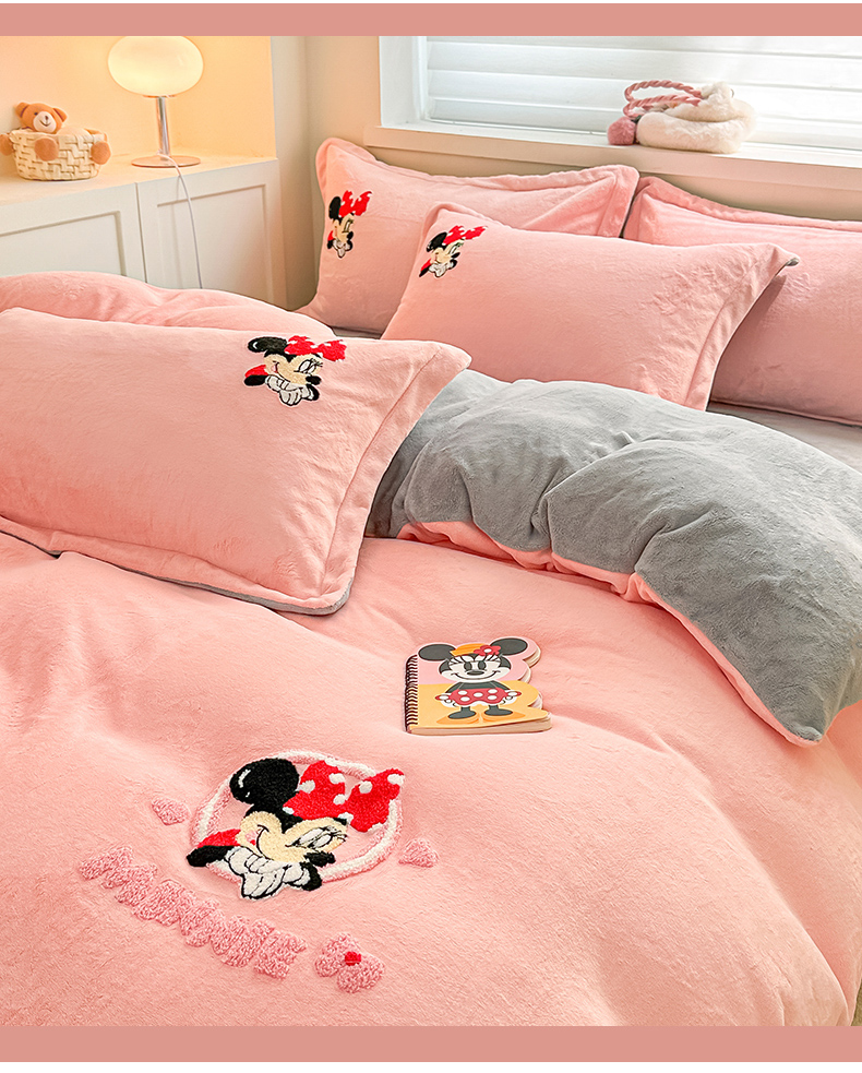 丽美人家纺 2023新款迪士尼系列牛奶绒毛巾绣四件套 米妮