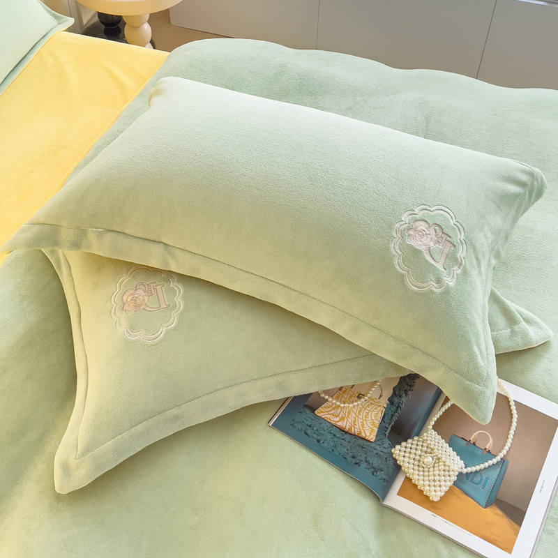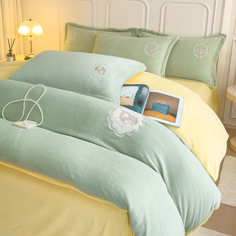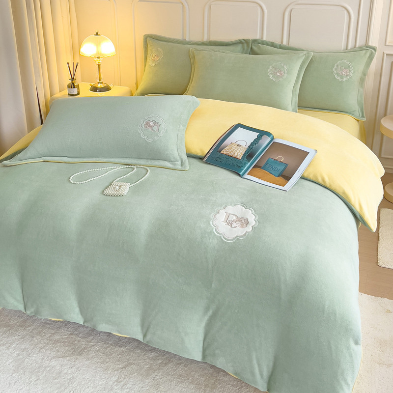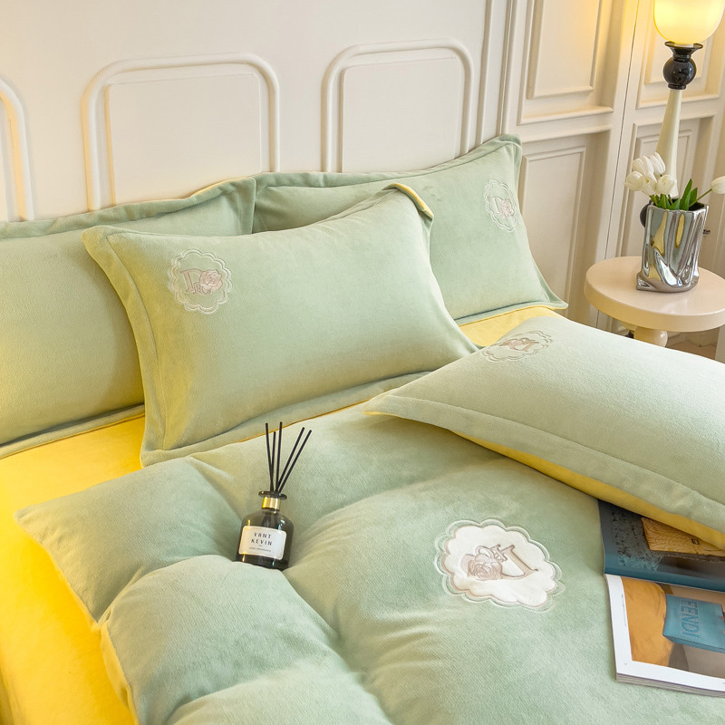 牛奶绒双拼小香风刺绣贴布绣四件套-戴安娜(含买家秀)戴安娜-牛油果绿