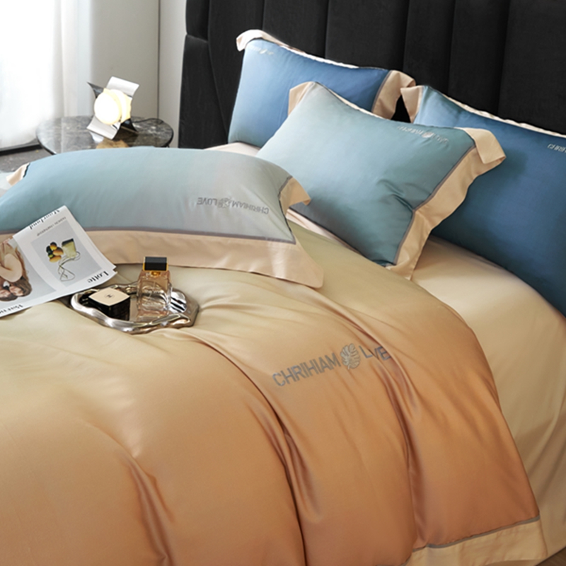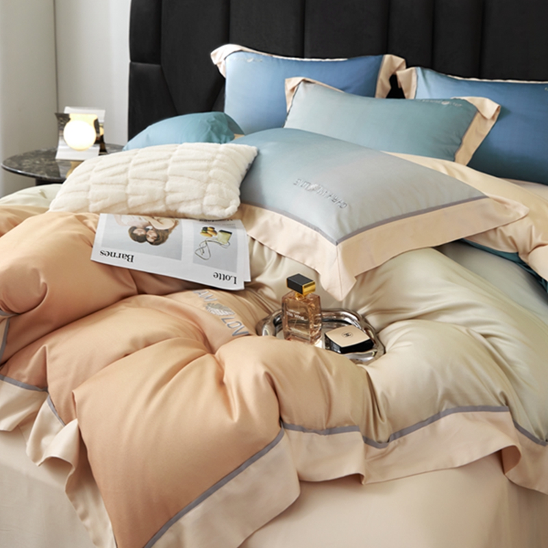 (总)时亿 2023新款100支长绒棉四件套苍兰之约,苍兰之约-橙,苍兰之约-绿