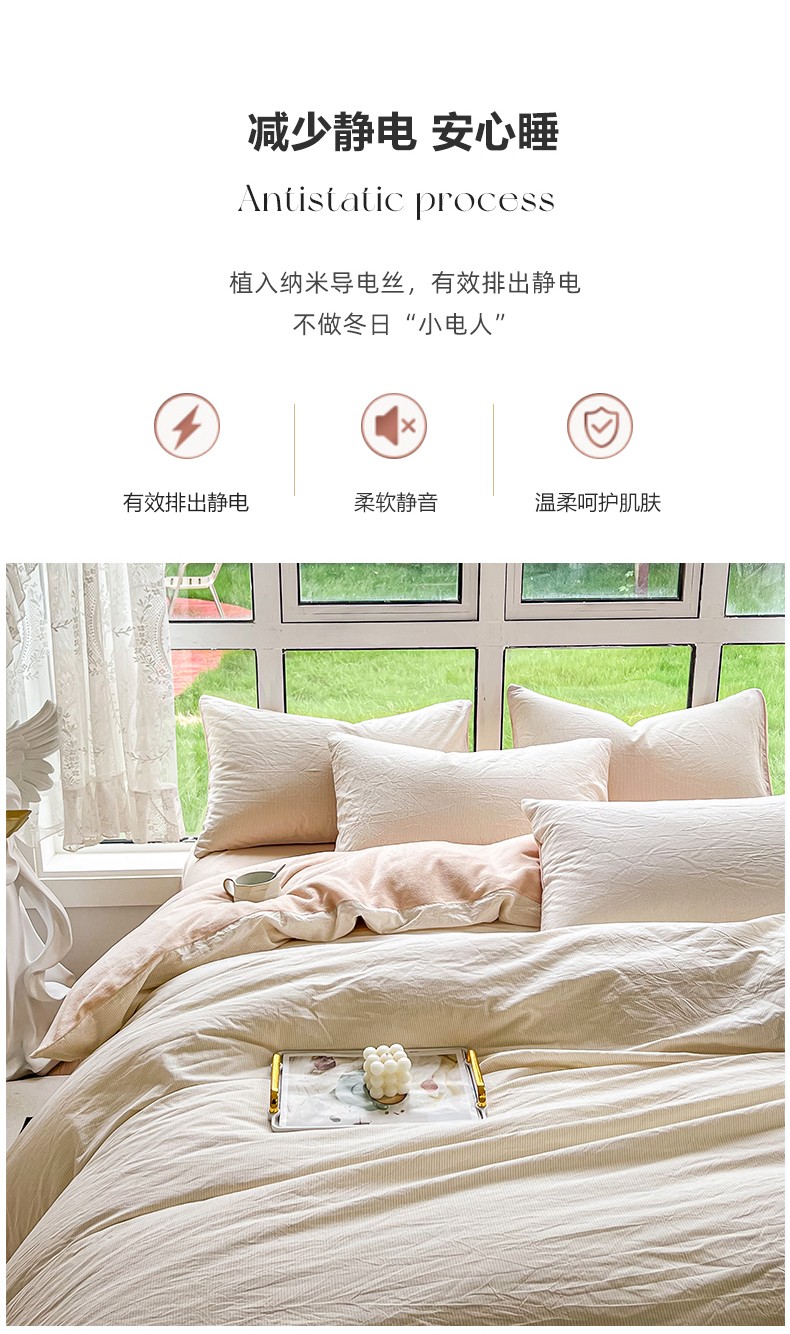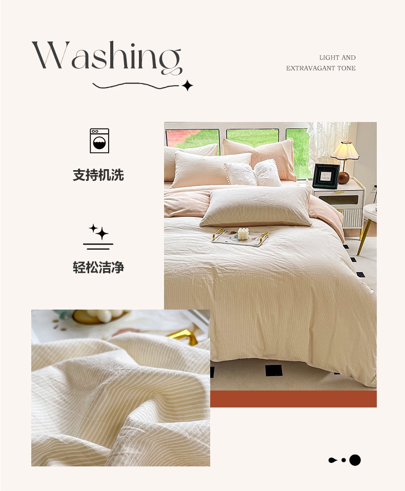 (总)柠萌家居 2026新款色织水洗棉四件套单被套,粉极细条,粉紫条,黄咖条,灰极细条,蓝咖条,绿极细条,绿紫条,米极细条,驼红条