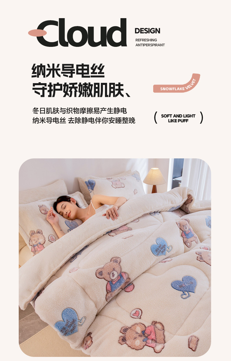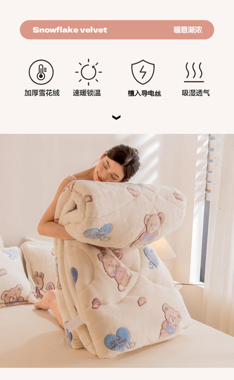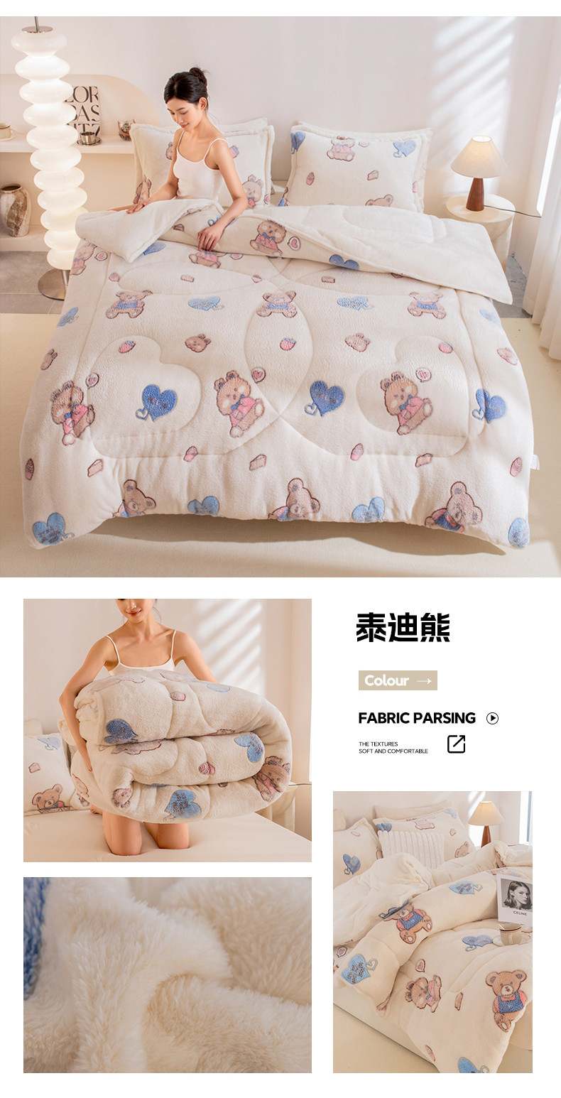 • 91家纺网 家纺一手货源 找家纺 永耀家纺 2024新款加厚雪花绒被子被芯 泰迪熊