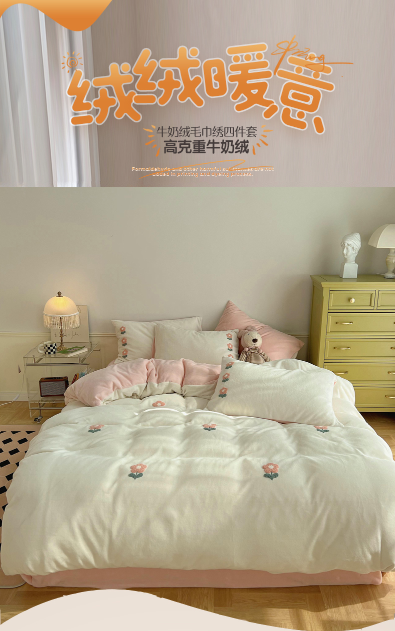 三朵家纺 2023新款高克重牛奶绒毛巾绣绣花四件套 莫奈花园